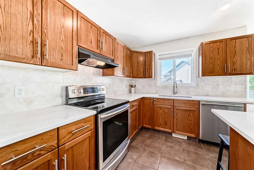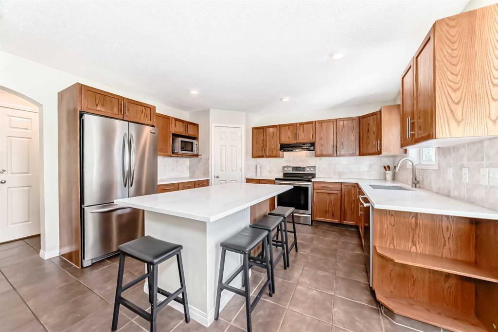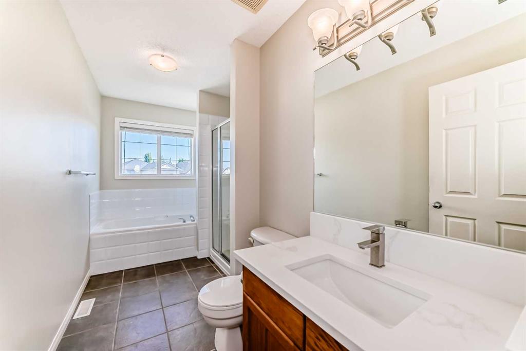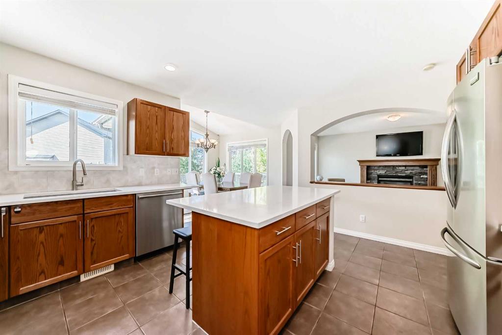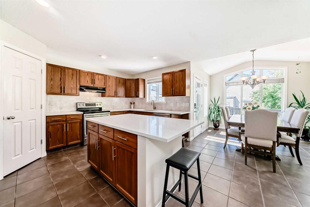 Absolutely pristine condition! Nested on a quiet street in the highly sought-after community of West Springs. This fully developed home offers a total of 5 bedrooms and 3.5 bathrooms. Open kitchen with gorgeous newly updated quartz countertops with undermount sink, centre island with room for stools, stainless steel appliances and pantry. Vaulted ceilings in the dining room and gas fireplace in living room. The updated quartz countertops extend to 3 bathrooms and the laundry room sink area. Convenient laundry/mud room and powder room complete the main level. Kenmore Elite front load washer and dryer with pedestal storage. Upstairs are 3 bedrooms including primary bedroom with a large 4-piece ensuite bathroom with separate shower, soaker tub and walk-in closet. A large bonus room completes the upper level. The fully developed basement has 2 additional bedrooms, 4 piece bathroom, rec room and plenty of storage. One remarkable feature of this home is the extra large windows on the lower does not feel like a basement. Central A/C for year round comfort. Large wrap around deck overlooking the beautifully landscaped west facing fenced backyard. The raised garden vegetable bed is included. Great curb appeal with front covered porch and vibrant red rose bush to greet you. Fantastic opportunity to own this well cared for home in one of Calgary’s most desirable communities. Walking distance to the new Radio Park in Calgary’s West District.