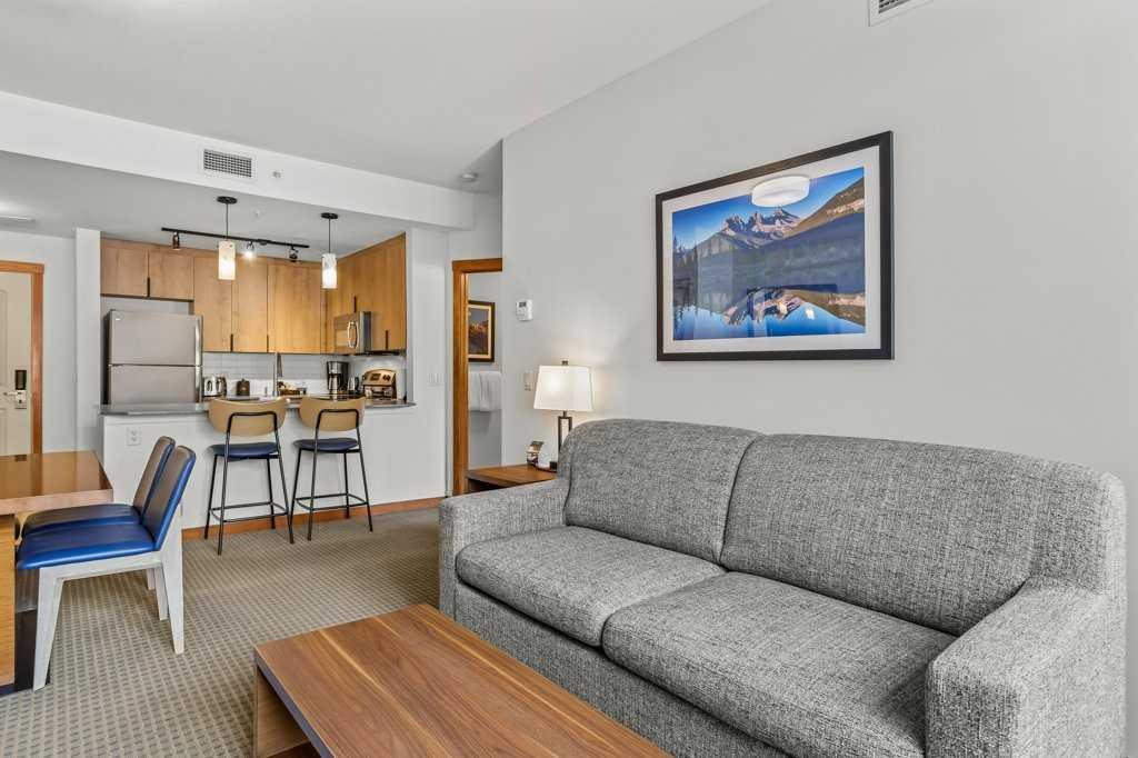 Discover effortless mountain living and income potential in this beautifully appointed 1 bed / 1 bath hotel condo unit at the renowned Falcon Crest Lodge in Canmore, Alberta. With approximately 600 sqft of intelligently designed space, this unit offers the perfect blend of comfort, style, and flexibility—ideal for your personal escape, a high-performing investment, or both.