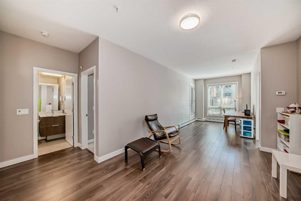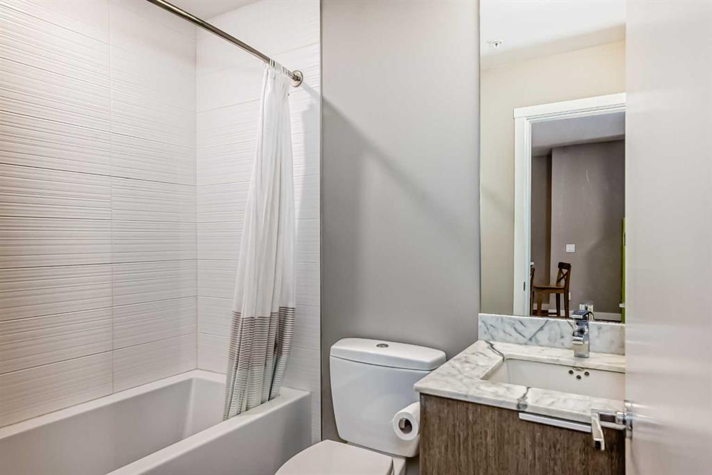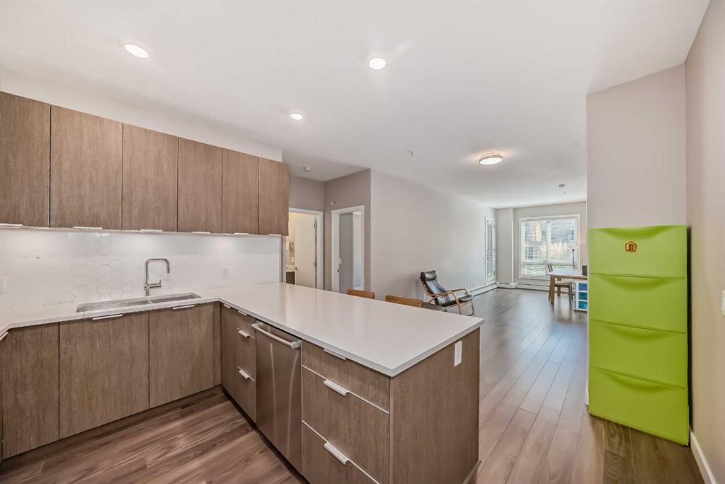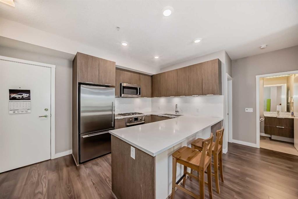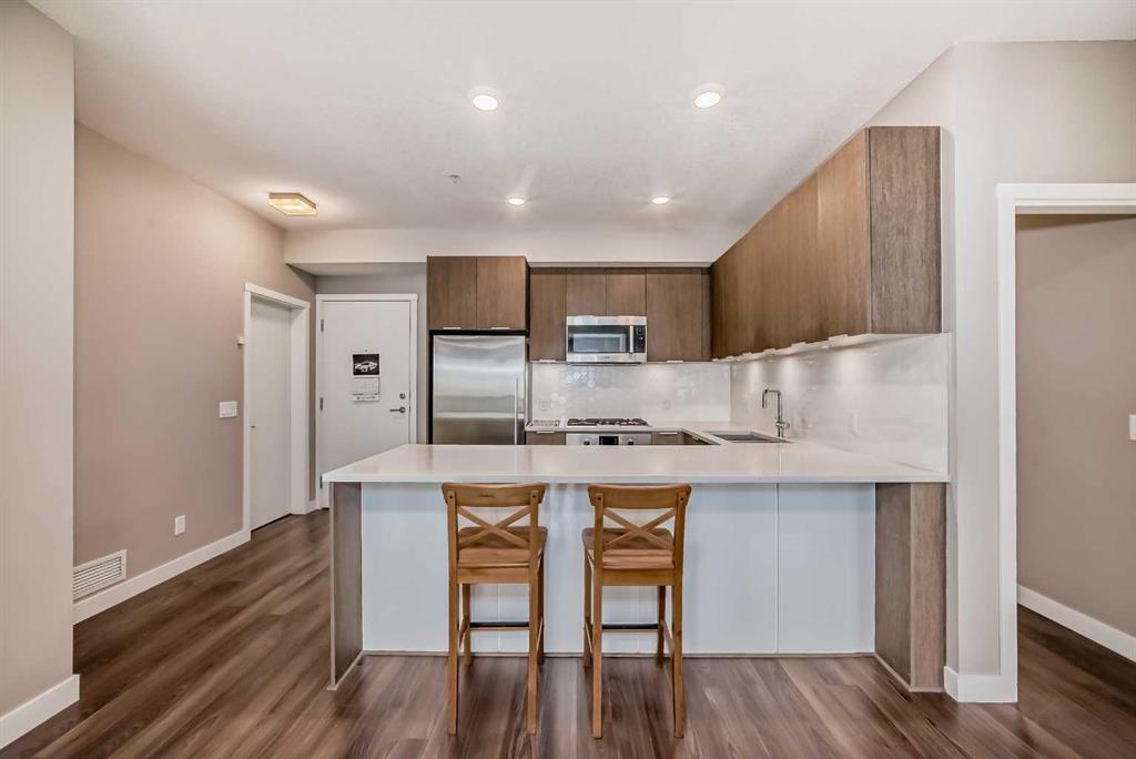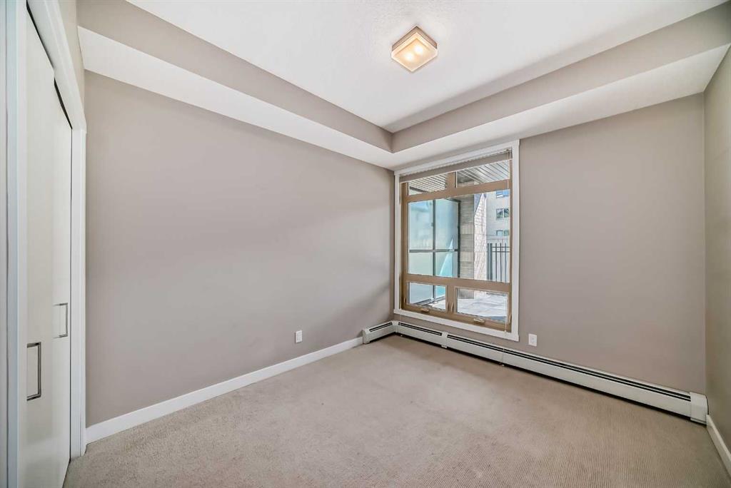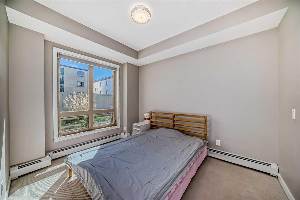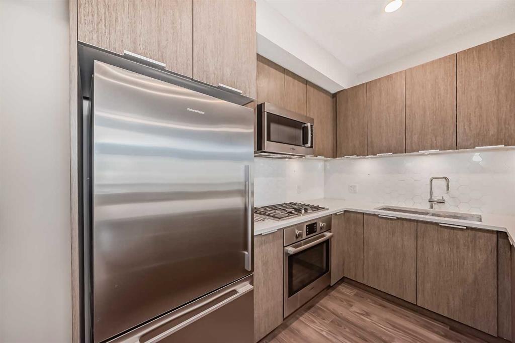 Discover urban living in the vibrant Sunnyside neighborhood with this stunning south-facing unit. Upon entering the secured building, you’re greeted by an impressive green living wall that creates a welcoming atmosphere. This spacious 2-bedroom + den unit is on the main floor, offering modern features throughout. The kitchen boasts sleek stainless steel appliances, ample counter space, modern cabinetry, quartz countertops, a gas stovetop, and a built-in oven, all set against beautiful laminate flooring. The living room is bright and inviting, with a large window that fills the space with natural light. Near the entrance, a spacious laundry room provides additional storage. The den is perfect for a home office, ideal for remote work. The unit includes a 4-piece bath near the secondary bedroom, and the master bedroom offers a walk-through closet leading to a 3-piece ensuite with a large shower and tiled floors. A titled tandem parking stall in the heated underground garage is also included. Located within a 5-minute walk to LRT stations, Safeway, and the trendy Kensington area with its cafes and restaurants, this unit provides easy access to the Bow River pathways for walking or biking with beautiful downtown views. SAIT is just two blocks away, and the University of Calgary is a short drive. The building amenities, including a car wash, workshop, storage rooms, and secure bike storage, ensure every need is met. Don’t miss this opportunity for luxury, convenience, and a fantastic lifestyle in a highly desirable location. Call for a viewing today!