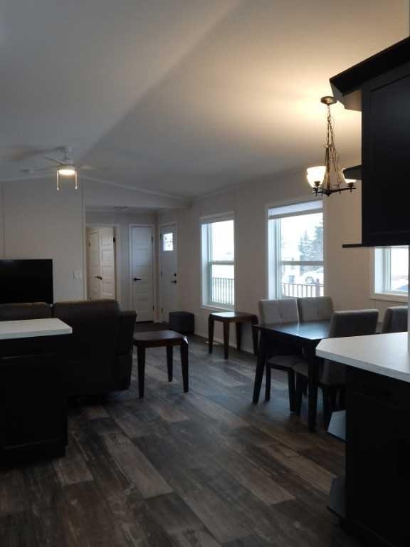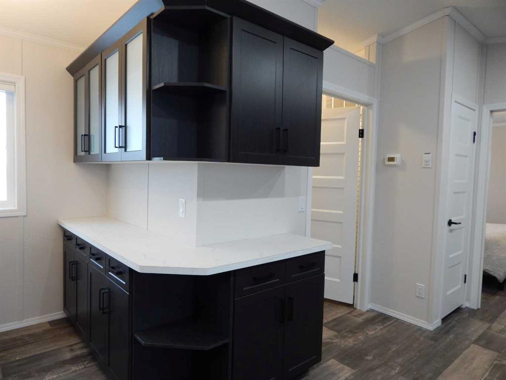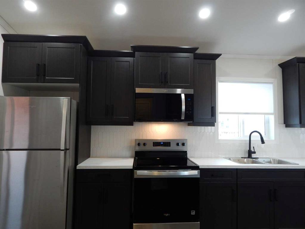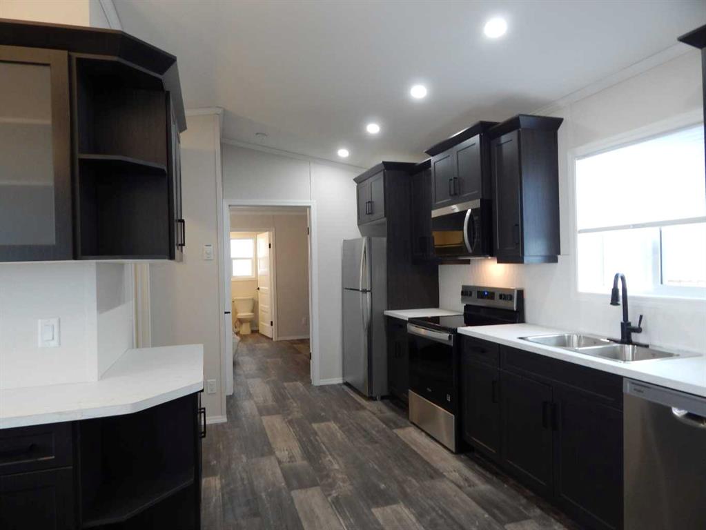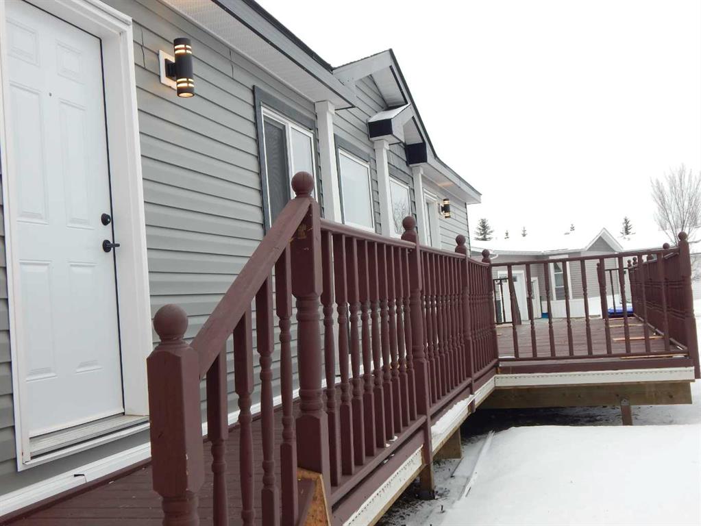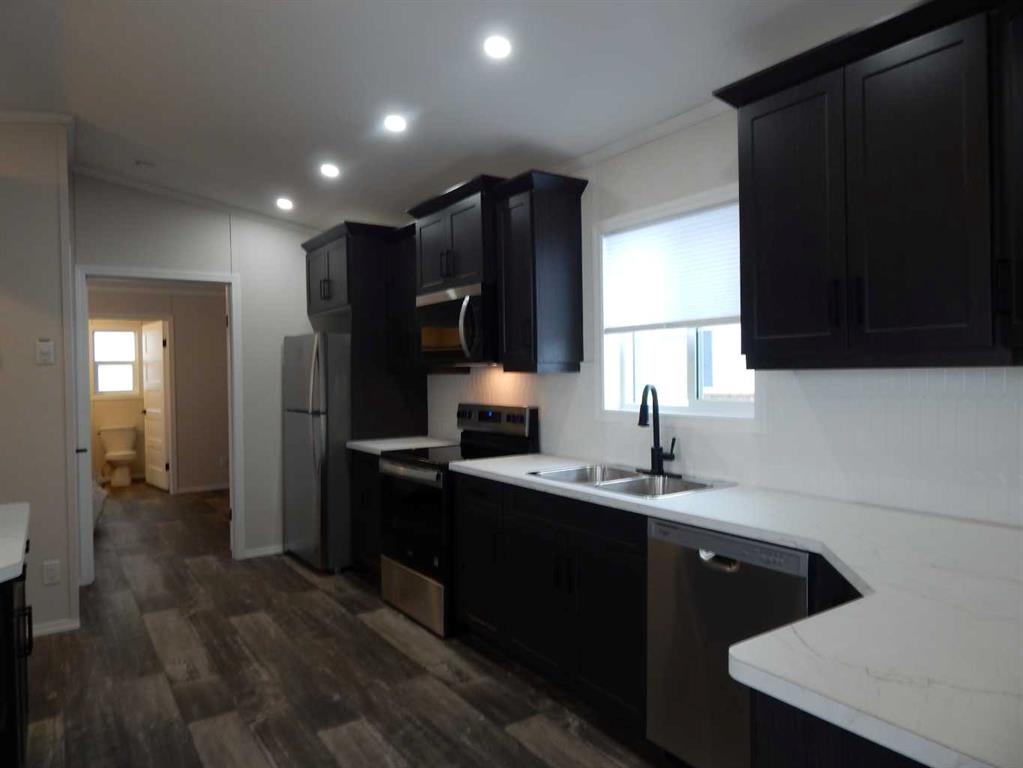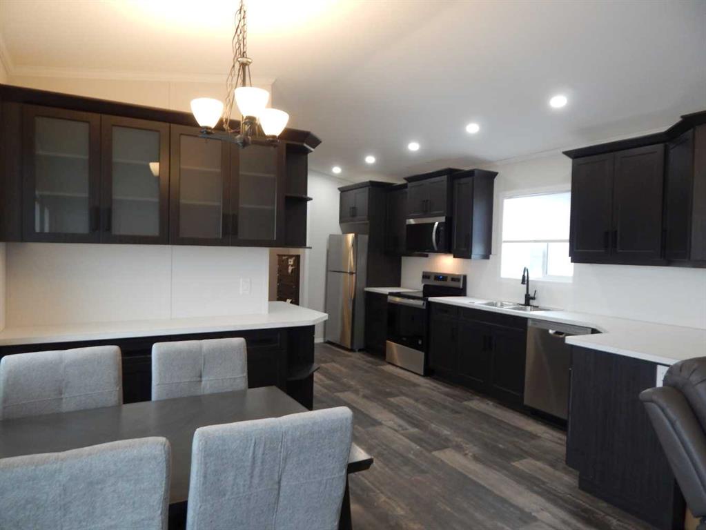 Wow! This is rare opportunity to own a NEW home in the Silverlynx adult living community. Beautiful Moduline Homes Mansura model recently was placed at it’s new address of #11 5210 65 Avenue Olds. Plan to be impressed with the modern warm tones and lay out of this 2 bedroom home. The dining area and kitchen blend seamlessly with the living room making visiting easy and provides for an ideal flow. The chef of the house is sure to enjoy their brand new kitchen that is thoughtfully laid out and filled with plenty of cabinets, counter space, stainless appliances and pantry. Many windows thru-out allow for the natural light to stream in. The spacious primary bedroom with walk-in closet and a 3 pce ensuite boasting lots of cabinets, countertops and a stand alone shower stall with 2 seats. The 2nd bedroom is also well set up with a double closet and is located at the opposite end of the primary bedroom providing plenty of privacy. Conveniently set beside the second bedroom is a 4 pce bathroom. Lastly the laundry pair is found nestled in the utility room where you will find the hotwater tank and furnace as well as the back door. Outside is an oversized deck, a larger storage shed and parking pad for 2 vehicles. Conveniently located close to shopping, eateries, walking paths and numerous other amenities. Park Approval is a requirement of this park. It is a 55+ community with pet restrictions and they must be approved by Park Management. This is a modular home on a leased lot, current lot rent is $617.00/mo and 2025 taxes are $1,035.00.
