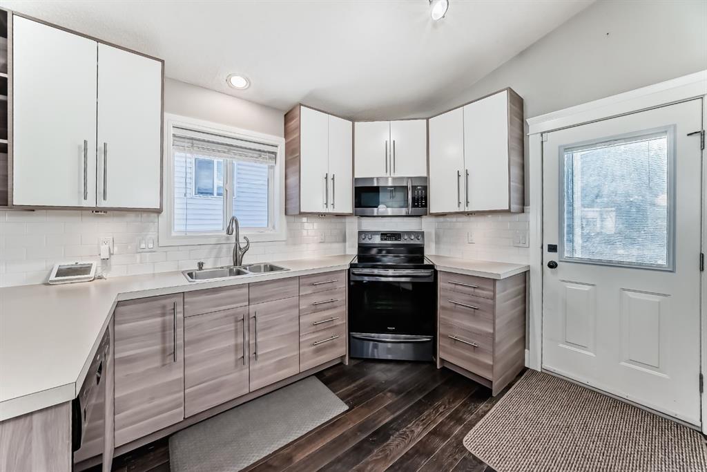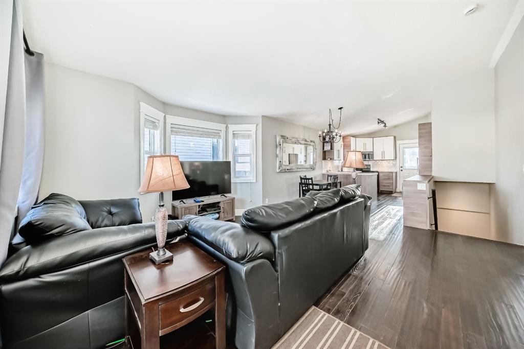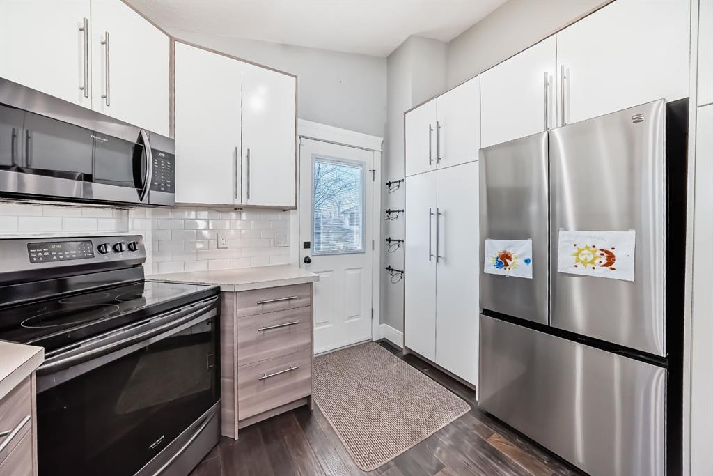 The fully finished basement provides a cozy retreat, ideal for movie nights or family gatherings. It features a welcoming family room, two large bedrooms (each with built-in storage and big south- and west-facing windows for ample natural light), a 4-piece bathroom with heated floors, and a practical laundry room with a sink—making it perfect for growing families or first-time buyers.