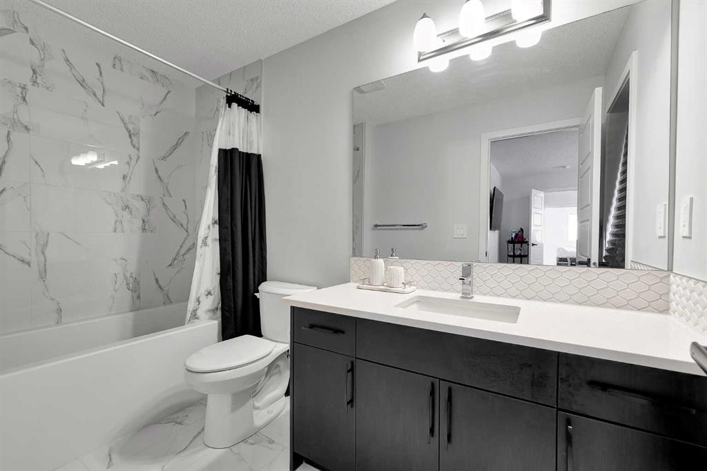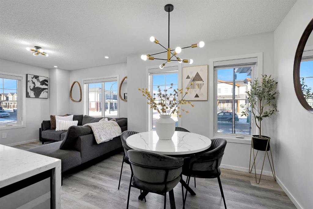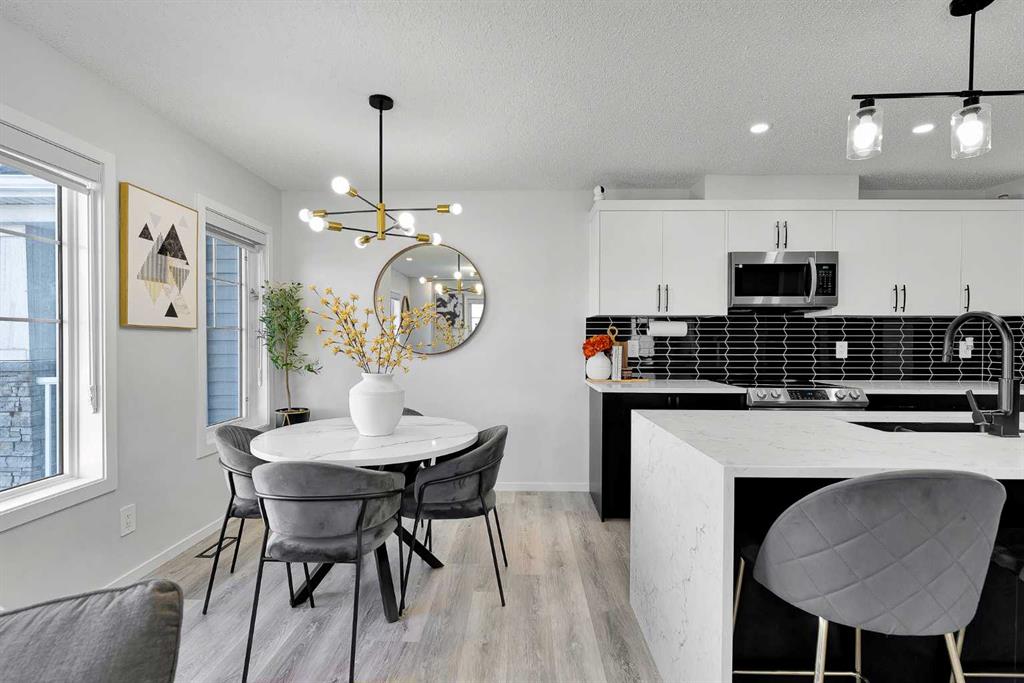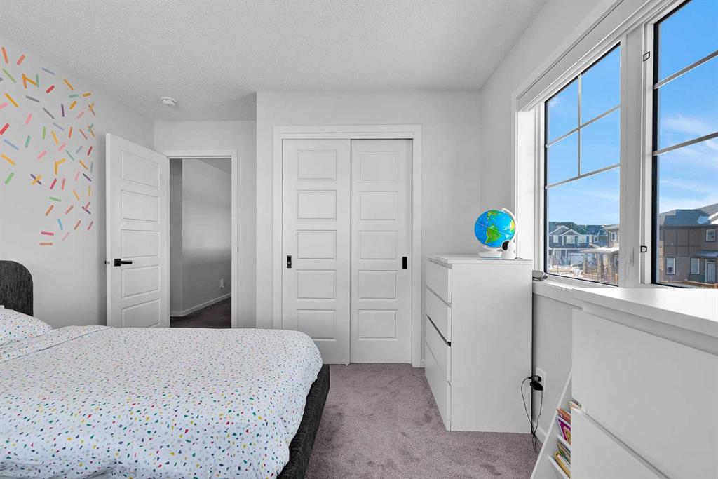 Located in the family-centric community of Carrington, this nearly new and impeccably maintained 3 Bed 3 Bath, air conditioned home, is the one you’ve been waiting for. Welcome to 11 Carringham Way NW! This unique corner unit features a private side entrance, offering the feel and look of a detached home. Upon entry, the main floor showcases impressive upgrades, including luxury vinyl plank flooring, a custom blind package, and stylish light fixtures. The kitchen is designed for both everyday living and entertaining, featuring a large quartz island, upgraded appliances, and ample cabinetry to meet all your storage needs. The open-concept layout includes a dedicated dining area and a bright front living room, perfect for gatherings. Extra windows throughout this corner unit flood the space with natural light thanks to its desirable west exposure. Upstairs, the primary bedroom provides a comfortable retreat with a walk-in closet and a four-piece ensuite—an ideal space for Mom and Dad as well as a private balcony that benefits from those sunny SW Mountain views. Two additional bedrooms, another four-piece bathroom, and convenient upper-level laundry complete the second floor. The basement is unfinished and ready for your creative vision. Outside, this oversized corner lot offers the option to fence the west and northwest sides, creating a private outdoor space. The insulated double attached garage is a welcome feature during Calgary’s cold winter months. Ideally located close to parks, playgrounds, shopping, and schools, with quick access to Stoney Trail and Deerfoot Trail. A future LRT extension and additional commercial development further enhance the long-term value of this fantastic home. Book your private showing today!