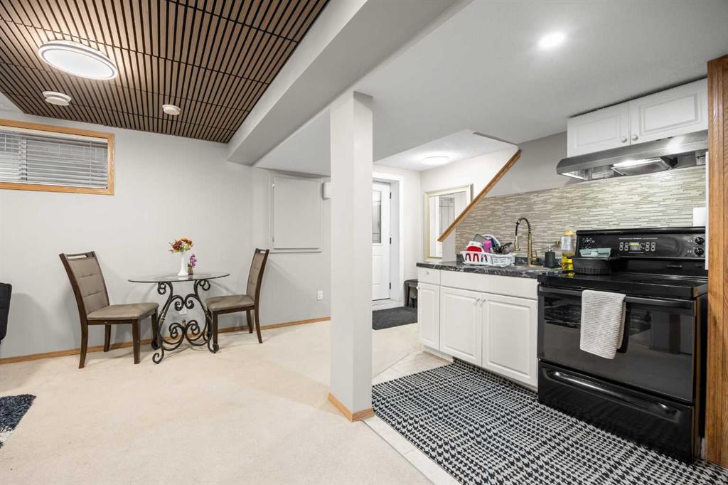 The legal walk-up basement suite offers its own covered front entrance, a spacious living and dining area, functional kitchen, one well-sized bedroom, a full bathroom, and second laundry, providing excellent privacy and strong rental potential.