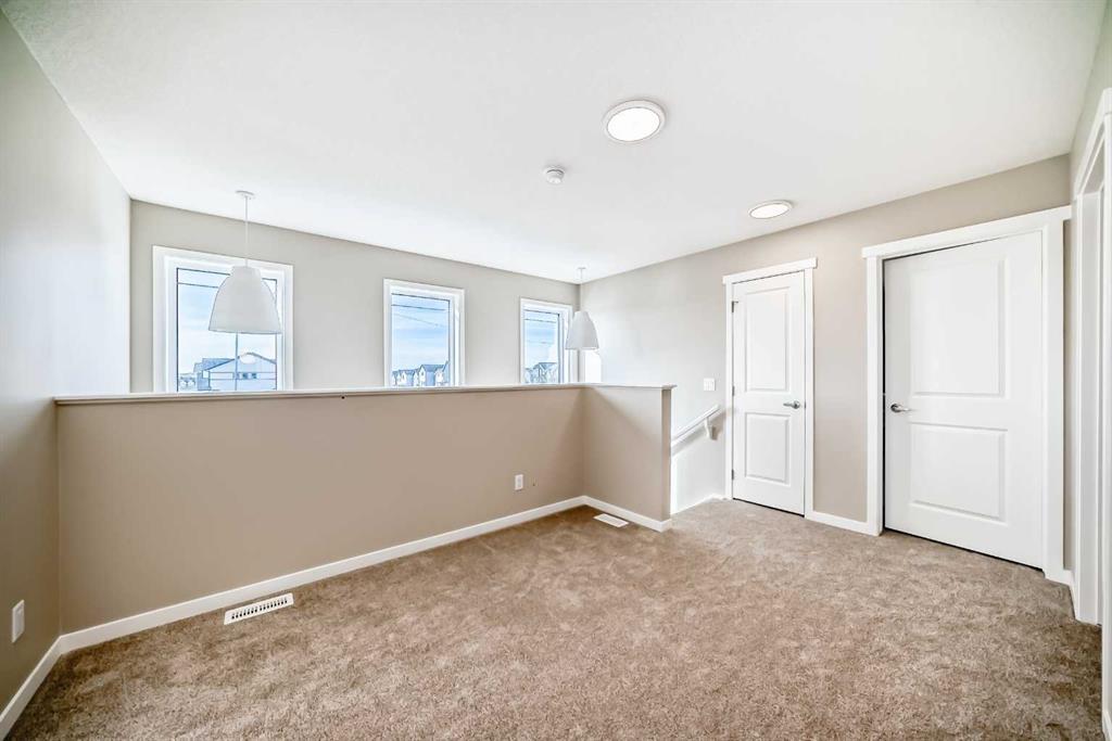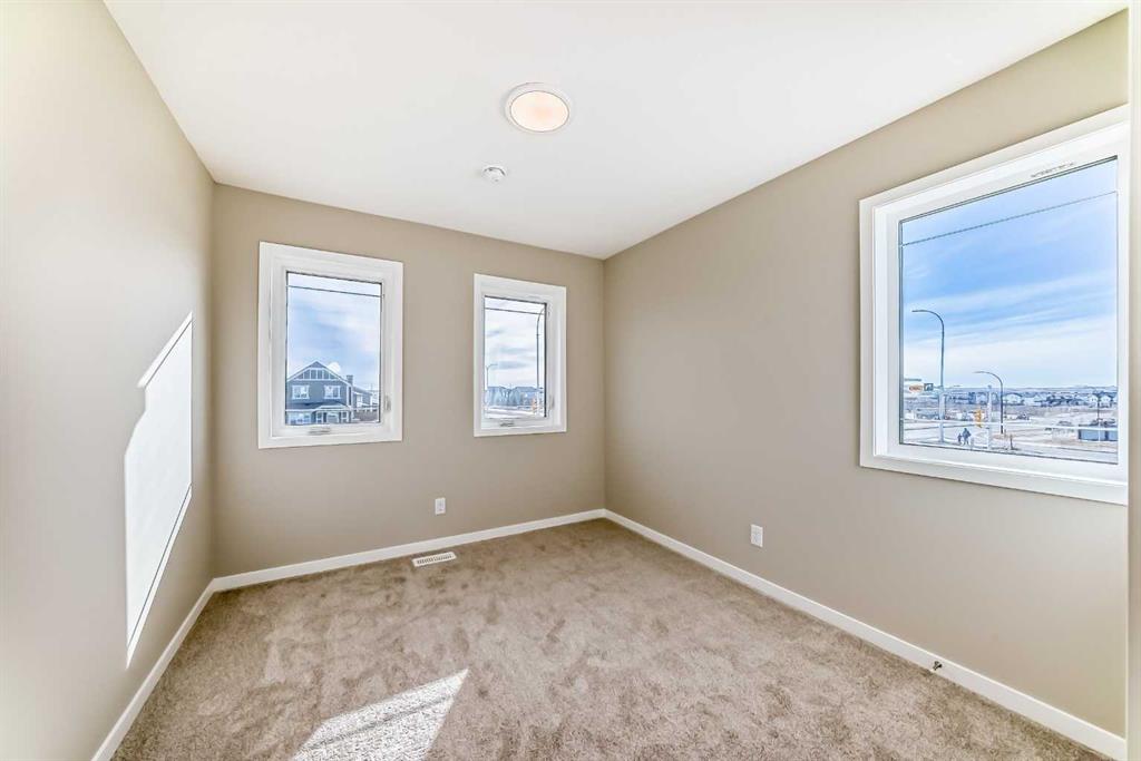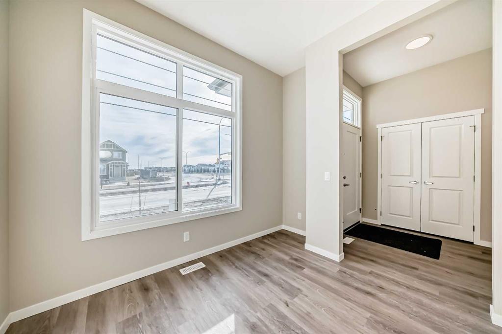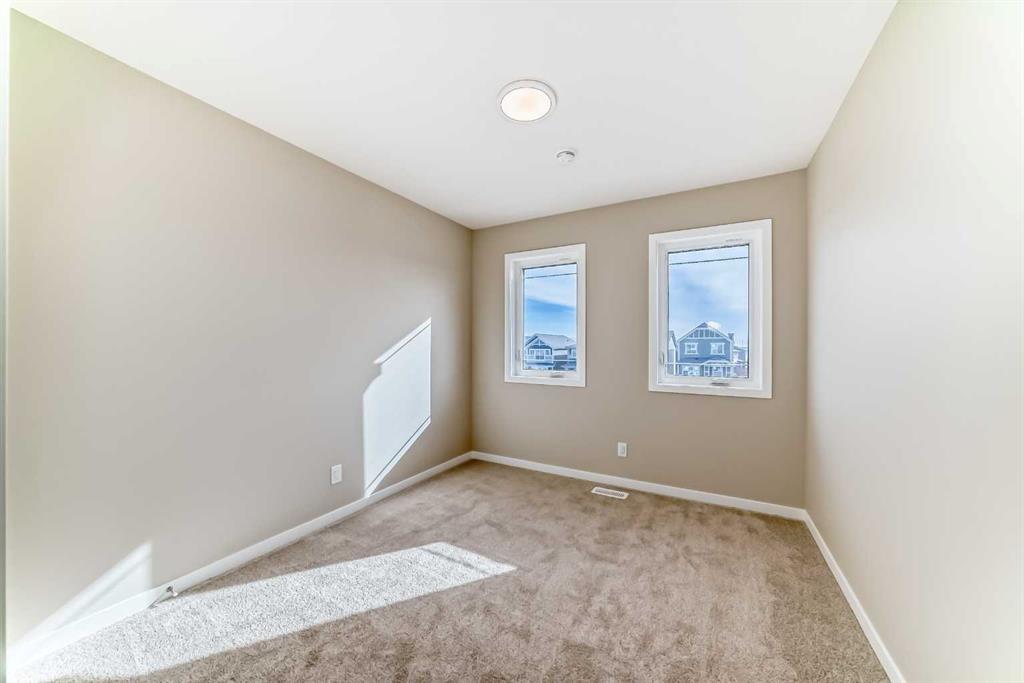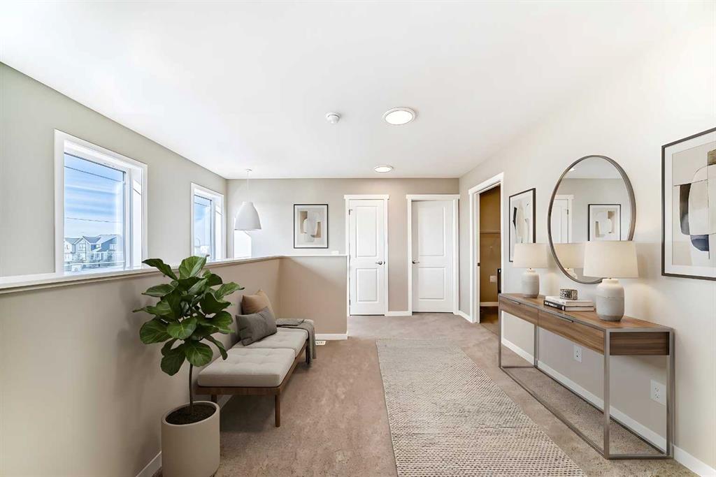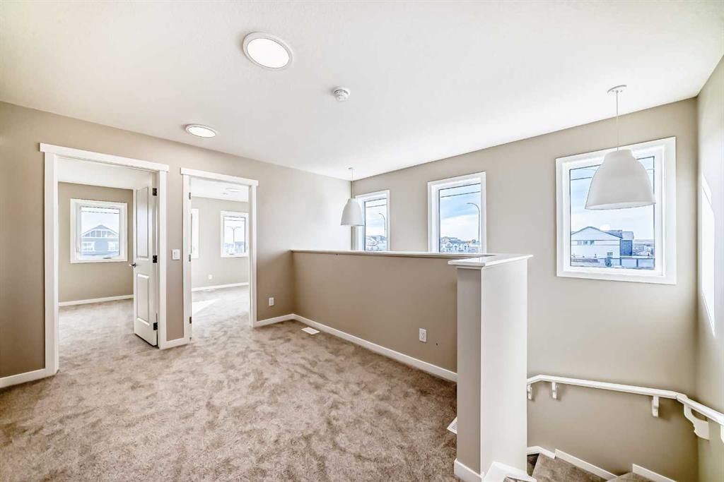 Welcome to this brand-new “Lyall” floor plan in the award-winning lake community of Mahogany, a thoughtfully designed home that blends modern style, everyday functionality, and future flexibility. From the moment you step inside, you’re greeted by soaring 10’ ceilings and warm luxury vinyl plank flooring that flows throughout the main level, creating an open and inviting first impression. At the front of the home, a versatile flex room offers the perfect place for a home office, reading lounge, kids’ playroom, or creative space. As you move toward the rear of the home, the layout opens beautifully into a bright and spacious living area designed for both daily living and entertaining. The living room feels warm and welcoming, the oversized dining area is ideal for family dinners or hosting friends, and the kitchen truly anchors the space with its stylish blend of modern cabinetry and warm wood tones. Complete with quartz countertops, a classic white subway tile backsplash, stainless steel appliances, and a large central island, this kitchen delivers both style and function in equal measure. Upstairs, a smartly positioned central loft creates a valuable second living space while also offering privacy between the primary retreat and the secondary bedrooms. The primary suite is a peaceful escape, featuring a spacious walk-in closet and a beautifully appointed 4-piece ensuite with dual sinks. Two additional bedrooms provide plenty of room for children, guests, or hobbies, while the full 4-piece bathroom and upper-floor laundry add everyday convenience. A secondary entrance adds even more versatility, offering future potential for a guest area, extended family setup, or additional living space (subject to city/municipal approval and permitting). This home also comes complete with full front and backyard landscaping, including sod, mulch on the side yards, and trees/shrubs in the front as per community guidelines. What truly sets this property apart is the oversized lot—a rare opportunity that offers endless possibilities for outdoor living, play space, gardening, or creating the backyard you’ve always envisioned. With the added side yard and a non-zero-lot-line placement, this home provides more breathing room and usability than many others, making it an exceptional option for buyers who value both space and future potential. Located in the vibrant four-season community of Mahogany, residents enjoy access to Calgary’s largest freshwater lake, two private beaches, a Beach Club, tennis courts, skating rinks, fishing, playgrounds, and over 22 km of scenic pathways and wetlands. The popular Village Market offers restaurants, cafés, shopping, and everyday conveniences, while nearby South Health Campus and the Seton Urban District add even more accessibility and lifestyle appeal. From summer paddleboarding to winter skating and peaceful walks through the wetlands, Mahogany offers a lifestyle that is truly second to none.