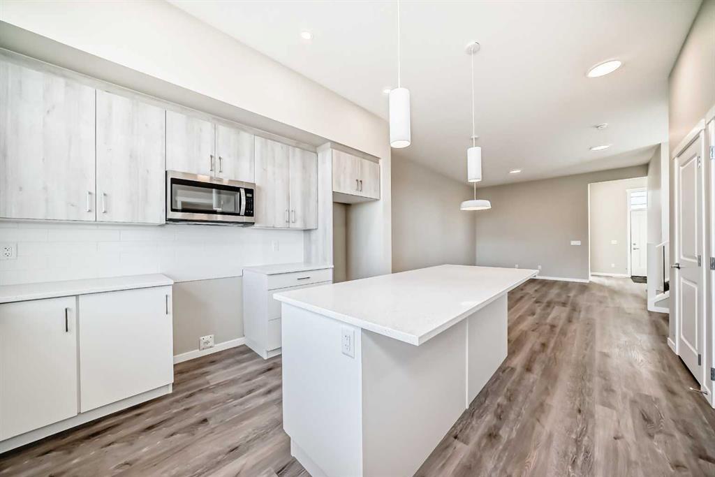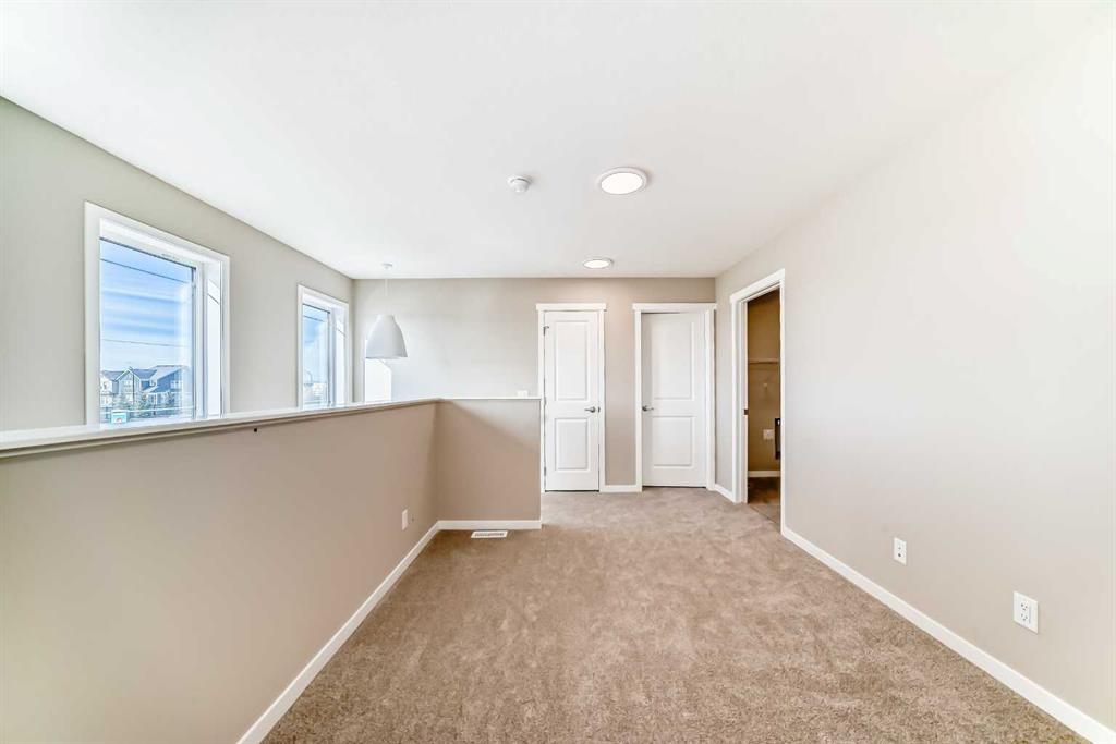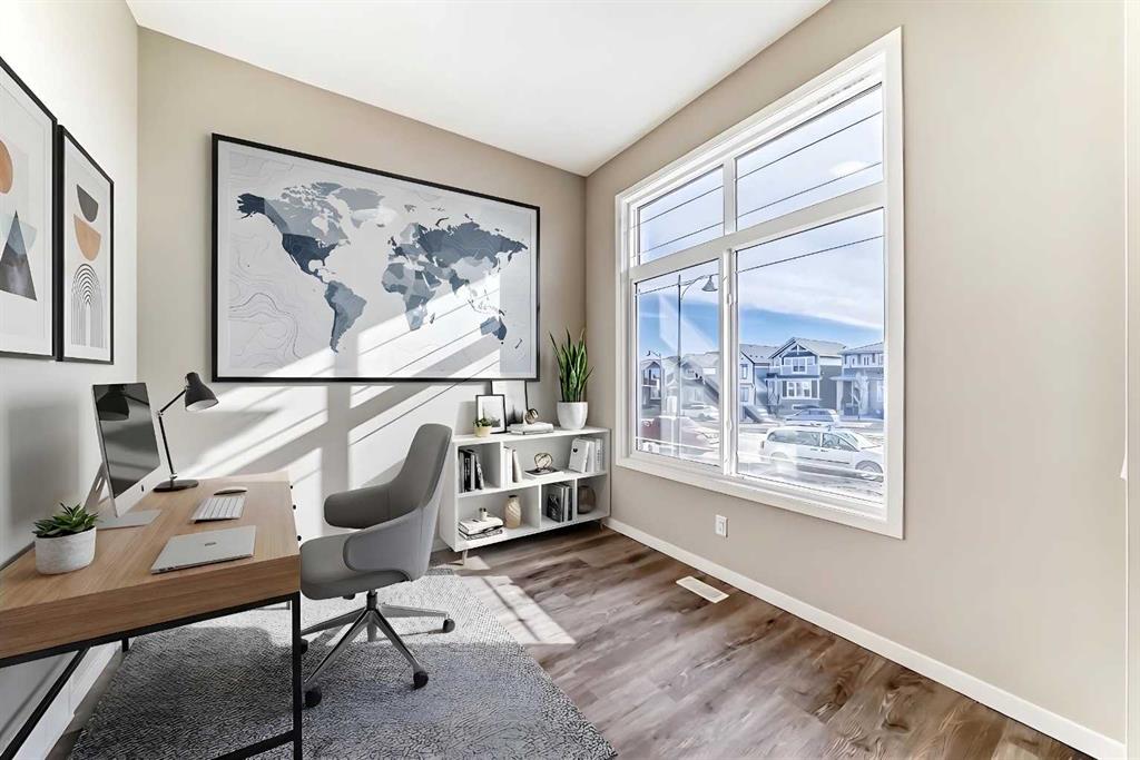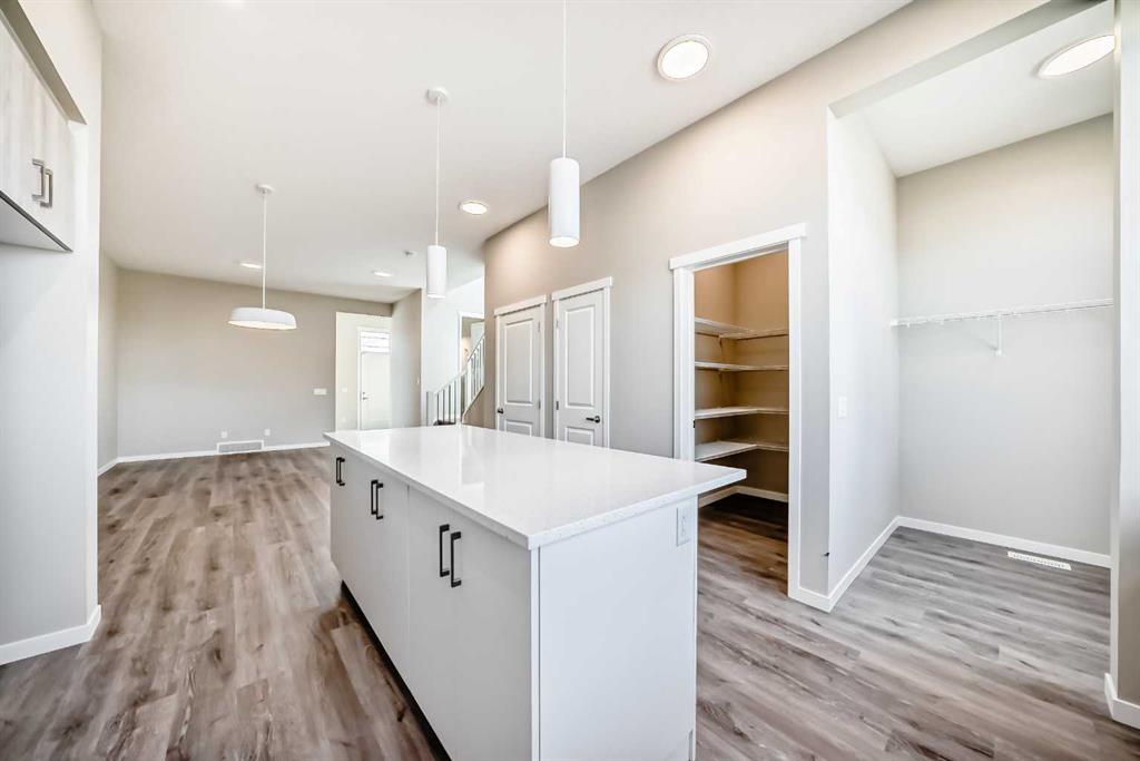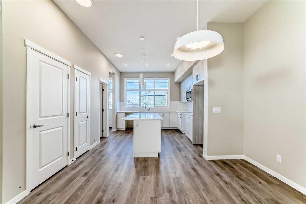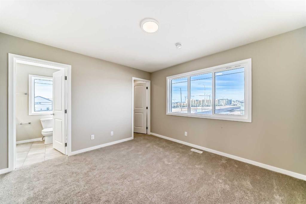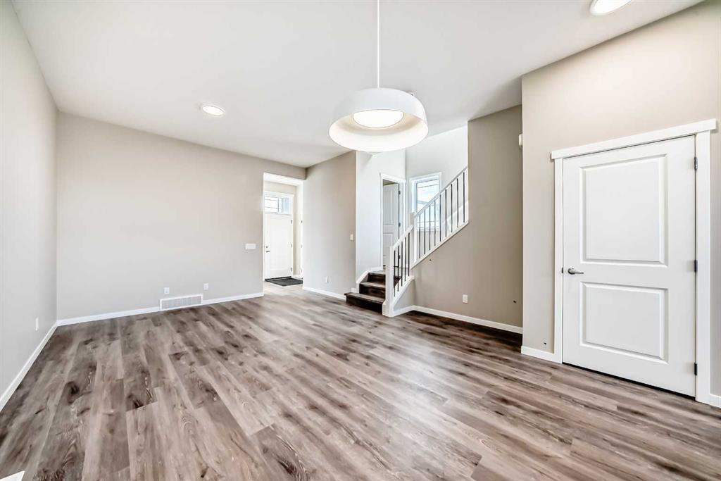 Welcome to this brand-new “Lyall” floor plan in the award-winning lake community of Mahogany, a thoughtfully designed home that blends modern style, everyday functionality, and future flexibility. From the moment you step inside, you’re greeted by soaring 10’ ceilings and warm luxury vinyl plank flooring that flows throughout the main level, creating an open and inviting first impression. At the front of the home, a versatile flex room offers the perfect place for a home office, reading lounge, kids’ playroom, or creative space. As you move toward the rear of the home, the layout opens beautifully into a bright and spacious living area designed for both daily living and entertaining. The living room feels warm and welcoming, the oversized dining area is ideal for family dinners or hosting friends, and the kitchen truly anchors the space with its stylish blend of modern cabinetry and warm wood tones. Complete with quartz countertops, a classic white subway tile backsplash, stainless steel appliances, and a large central island, this kitchen delivers both style and function in equal measure. Upstairs, a smartly positioned central loft creates a valuable second living space while also offering privacy between the primary retreat and the secondary bedrooms. The primary suite is a peaceful escape, featuring a spacious walk-in closet and a beautifully appointed 4-piece ensuite with dual sinks. Two additional bedrooms provide plenty of room for children, guests, or hobbies, while the full 4-piece bathroom and upper-floor laundry add everyday convenience. A secondary entrance adds even more versatility, offering future potential for a guest area, extended family setup, or additional living space (subject to city/municipal approval and permitting). This home also comes complete with full front and backyard landscaping, including sod, mulch on the side yards, and trees/shrubs in the front as per community guidelines. What truly sets this property apart is the oversized lot—a rare opportunity that offers endless possibilities for outdoor living, play space, gardening, or creating the backyard you’ve always envisioned. With the added side yard and a non-zero-lot-line placement, this home provides more breathing room and usability than many others, making it an exceptional option for buyers who value both space and future potential. Located in the vibrant four-season community of Mahogany, residents enjoy access to Calgary’s largest freshwater lake, two private beaches, a Beach Club, tennis courts, skating rinks, fishing, playgrounds, and over 22 km of scenic pathways and wetlands. The popular Village Market offers restaurants, cafés, shopping, and everyday conveniences, while nearby South Health Campus and the Seton Urban District add even more accessibility and lifestyle appeal. From summer paddleboarding to winter skating and peaceful walks through the wetlands, Mahogany offers a lifestyle that is truly second to none.
