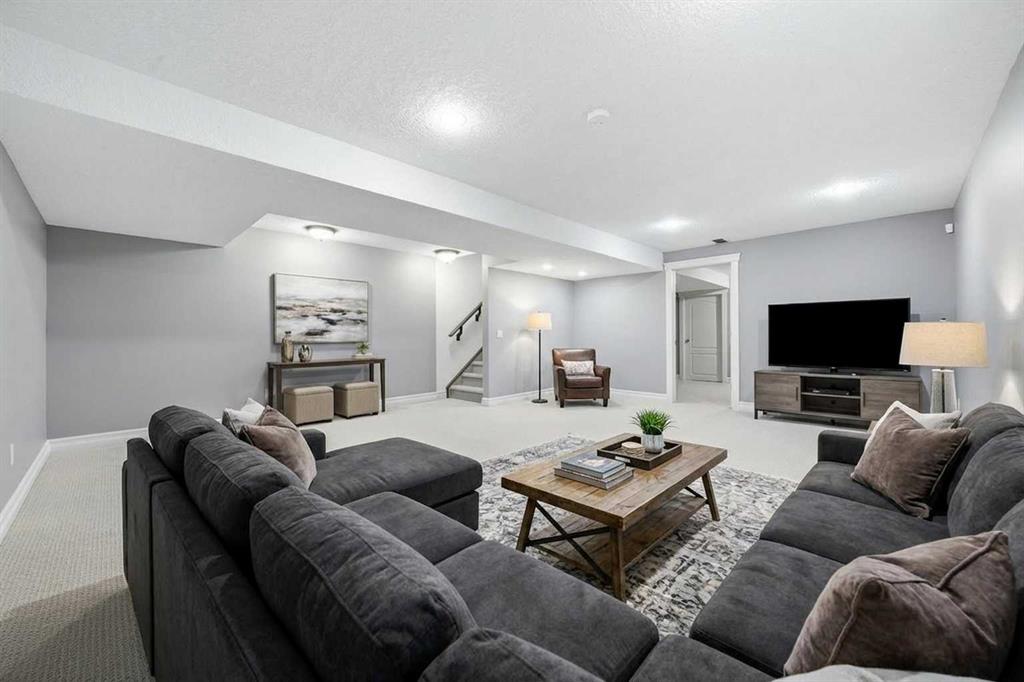 Additional features include central A/C, full-height custom cabinetry, built-in great room cabinets, a skylight above the staircase, gas line to BBQ, central vacuum rough-in, rear deck, window coverings throughout, and 9-foot main-floor ceilings. All of this is located just minutes from the city core.
