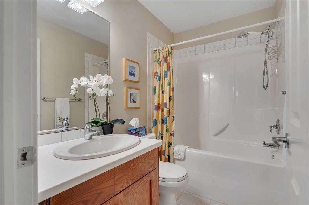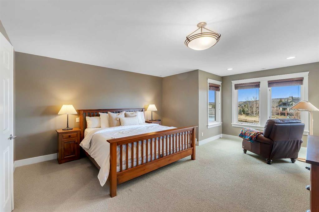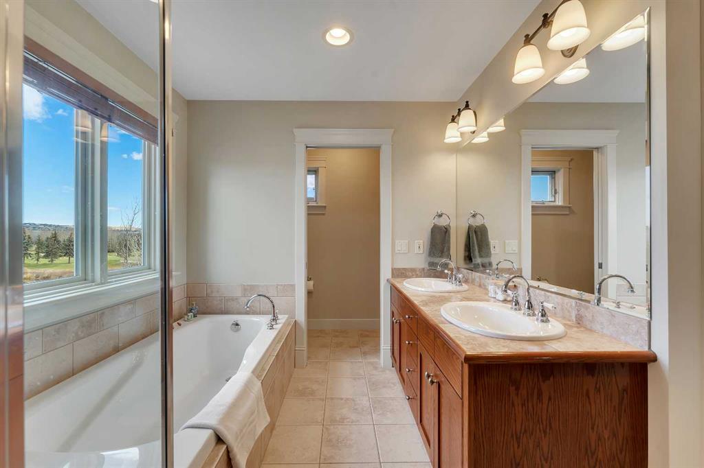 Upstairs, the primary suite is generous and calm, pond views, a walk-in closet, and a spa-inspired ensuite with a soaker tub and separate shower. Two additional bedrooms offer real space for kids or guests.