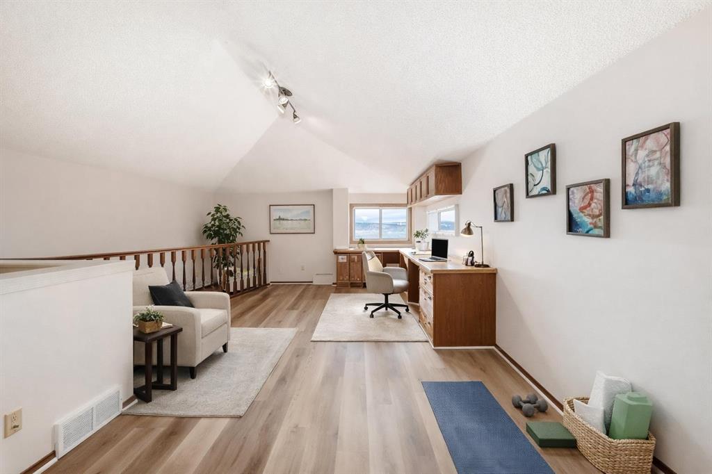 Beautifully maintained, open-concept bungalow with a rare loft, located in the heart of Somerset. This home offers 2 bedrooms on the main level plus 2 additional bedrooms in the fully developed basement. Features include vaulted ceilings throughout, two large architectural skylights, and a unique loft overlooking the living area. The spacious primary bedroom boasts a 5-piece ensuite with jetted tub and heated bathroom floors. Quality upgrades include superior cabinetry, granite countertops, stainless steel appliances, double-oven electric range, upgraded lighting, central A/C, and new LVP flooring in the living room. The basement is complete with 2 large bedrooms, 4-piece bathroom, den, and ample storage. Enjoy the landscaped, south-facing backyard with retractable awning and gas BBQ hookup, ideal for entertaining. Move-in ready with updates including roof & partial vinyl siding (2022), electric range (2022), fridge (2025). Walking distance to C-Train, water park, schools, shopping, and YMCA. Flexible possession available.