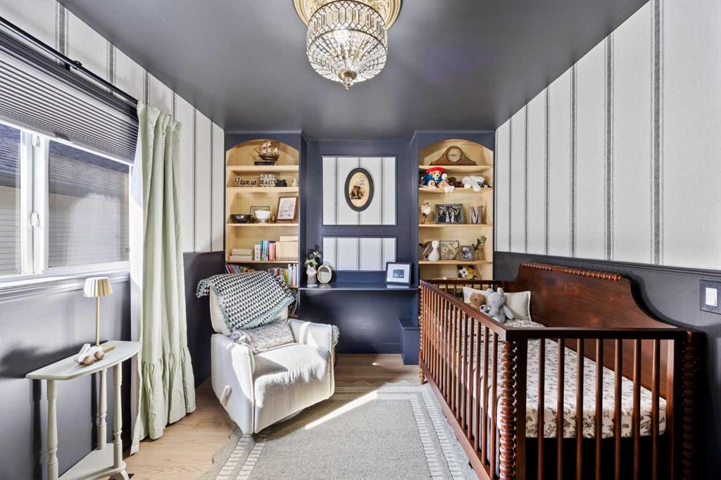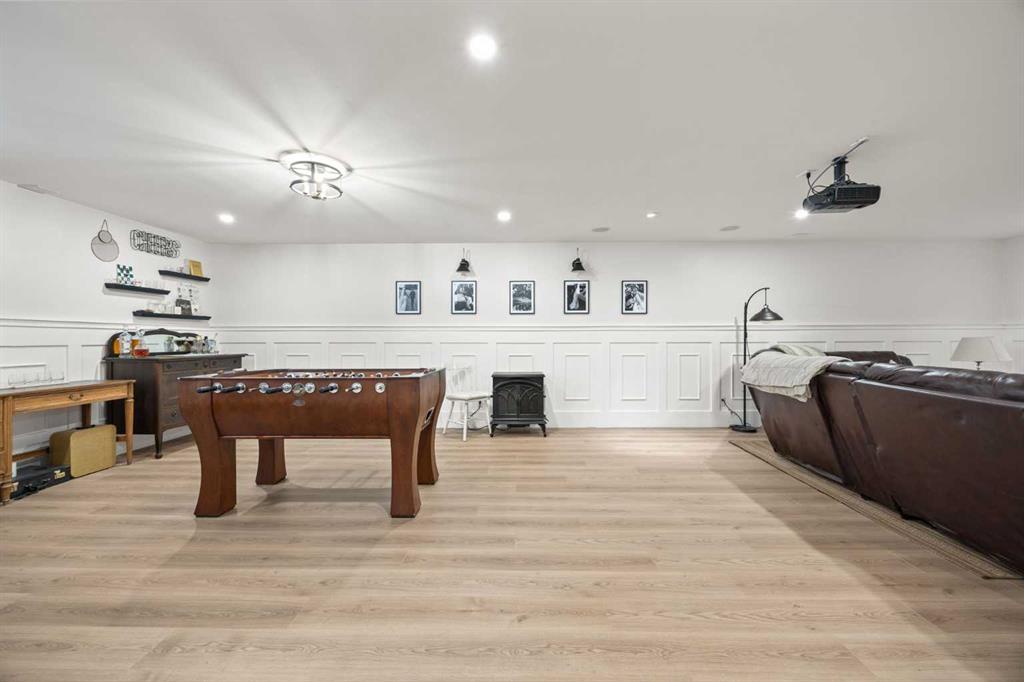 The second bedroom is magazine-worthy, with custom built-ins, warm designer tones, and trendy lighting that make this space truly special. Downstairs, the fully finished lower level is made for fun, offering a massive rec room and games area plus a dedicated movie theater space complete with projector and big screen — ideal for family movie nights or cheering on your favorite team. A large third bedroom and an additional full bathroom make this level perfect for guests or older kids.