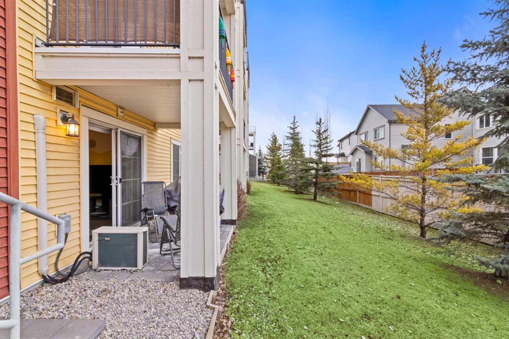 Tucked into Copperfield Park, this bright two bedroom home offers something rarely found in condo living, a true sense of space, privacy, and seamless indoor outdoor living. Inside, the thoughtfully designed layout feels open and comfortable without wasted space. The kitchen anchors the home with granite countertops, stainless steel appliances, a generous island, and ample pantry storage, perfect for everything from quick mornings to relaxed evenings. The living area flows naturally toward the back of the unit, creating a welcoming space that easily accommodates both lounging and dining. What truly sets this home apart is the direct access to green space from your patio. Step outside and enjoy the feel of your own yard, ideal for pet owners, morning coffee, or unwinding at the end of the day. A gas BBQ hookup makes it ready for summer evenings and easy entertaining. The primary bedroom is bright and calming, while the second bedroom features a built in Murphy bed, offering flexibility as a guest room, home office, or both. A full bathroom, in suite laundry, and excellent storage add everyday convenience. Located close to the entrance and elevators, with a titled underground parking stall and storage locker. Surrounded by parks and pathways, with quick access to Stoney Trail, Deerfoot, and the shops and restaurants of 130th Avenue, McKenzie Towne, and Mahogany, this home offers both comfort and connection.