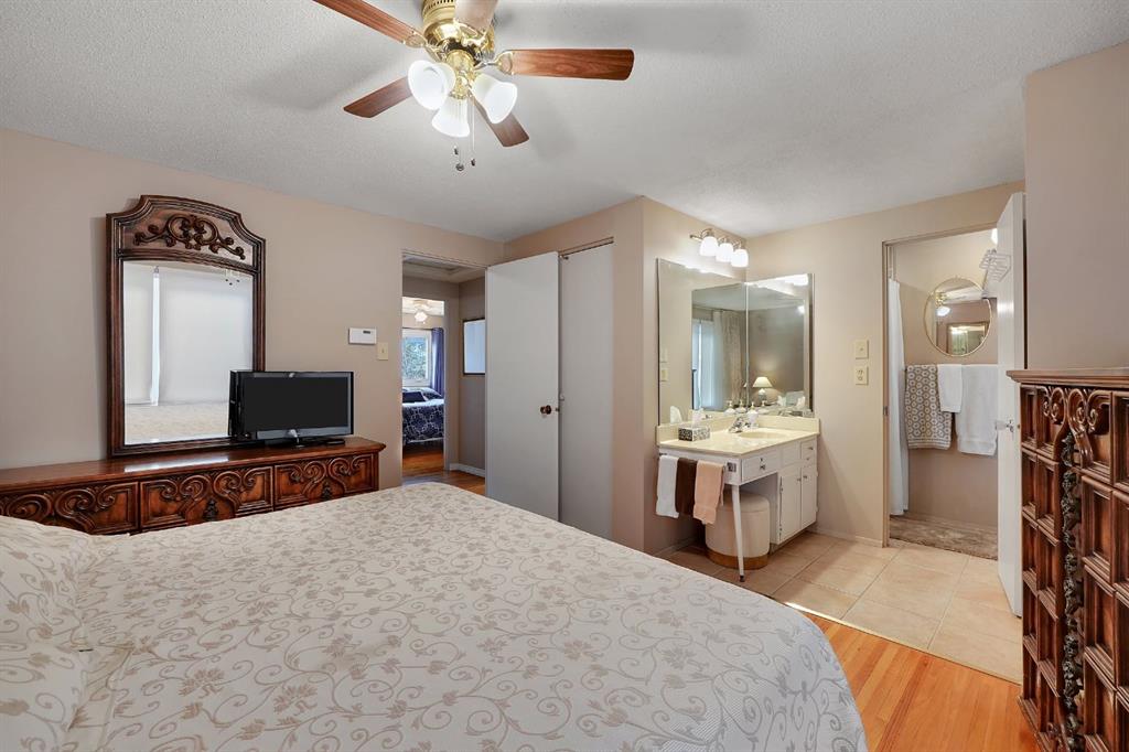 ***POPULAR AND RARE KEITH-BUILT M-7 PLAN 2 STOREY SPLIT*** in the ever-popular and highly-sought community of Lake Bonavista. Welcome to a lovingly cared for, regularly maintained, and thoughtfully updated Family Home for over 50 years. The Main Level is comprised of a bright, tiled Entryway with Double Closet, a large Living Room with gleaming hardwood and a Five Pane Triple Glazed Bay Window, a Formal Dining Room in hardwood, a functional, tiled Kitchen with Refurbished Keith Maple Cupboards and Cabinets views of the Bow Valley, an attached, tiled Breakfast Nook with another view window, and a cozy step-down Family Room, in hardwood and featuring a beautiful Fireplace (Gas) wall, composed of Brick Facing, Oak Mantle and Raised Slate Hearth. The private Upper Level is comprised of a Master Bedroom with a privacy Ensuite, featuring a privacy toilet / shower component plus a sink / dressing area and a Picture Window view of the expansive Bow Valley. The Lower Level is modestly developed with a large Recreation Room and a smaller Games Room. The prime location, backing onto the edge of the escarpment overlooking the Bow Valley offers Exclusive Lake Access with year-round activities such as Swimming, Paddle Boarding and Skating, just minutes away, Excellent Public and Separate Schools, Parks, Playgrounds, Off Leash Walking Paths, Lake Bonavista Shopping Centre, Dining, Major Routes, Public Transit and LRT, Southcentre Mall. For outdoor enthusiasts, Fish Creek Park, with its scenic Pathways and picturesque Bow River, is but minutes away, offering endless opportunities for adventure and relaxation. Easy access to Stoney Trail and Deerfoot Trail. And Excellent Neighbours.