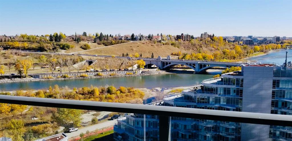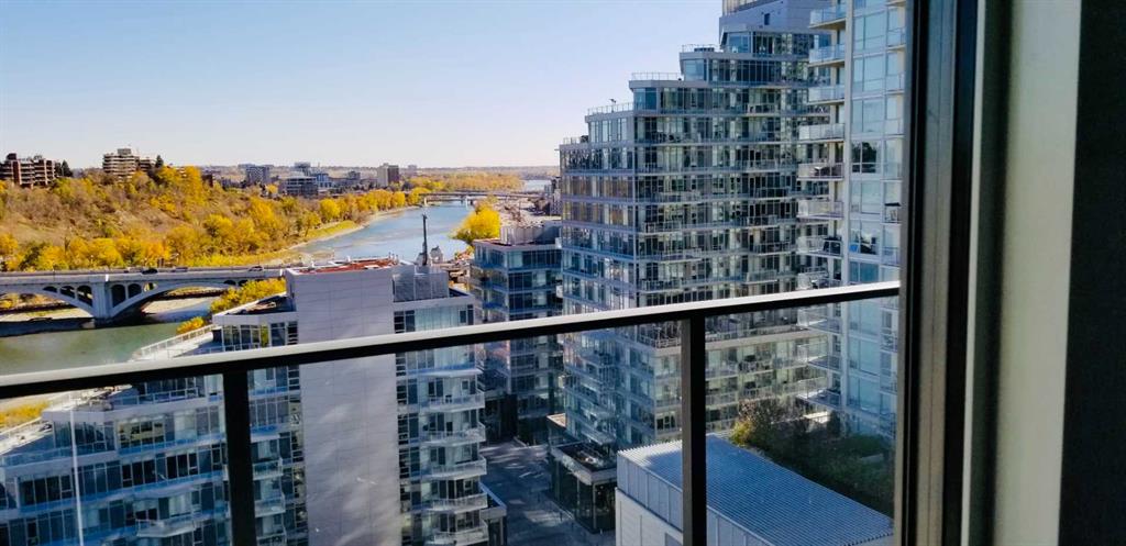 North-facing beautiful one bedroom plus DEN unit featuring beautiful river views ENJOY TRENDY LIFESTYLE – THE OUTLOOK @ WATERFRONT IN EAU CLAIRE – Just Steps to Prince’s Island Park & Bow River! Well-Designed Downtown Condo with handsome AMENITIES i & Urban Convenience including Best Shopping, Lounge & Restaurants, theatre and a short walk to +15 to the LRT! This executive 1 BR + DEN+ INSUITE STORAGE comes with a Great Layout with Wide Plank Laminate Floors throughout! Gourmet kitchen with Quartz Counter Tops, Soft-Close Cabinetry. Built-in Blomberg FRIDGE, Gas Cooktop, Electric oven. 9 Ft Flat Ceilings throughout with Nearly Floor to Ceiling Windows. The oversized den can be used as a bedroom, spacious balcony with BBQ outlet. Building Amenities includes Concierge Service, Car Wash, Bike Storage, Fitness Centre with Yoga Studio, Ample Cardio machines, and Hot Tub! Steam Rooms and shower in Men’s and Women’s locker Rooms, a Lounge with high-speed internet, pool table, kitchenette, fireplace and TV and a private Theatre for use with private bookings. One heated under parking + One Storage is included. Currently tenant-occupied with rent of $2,000/month