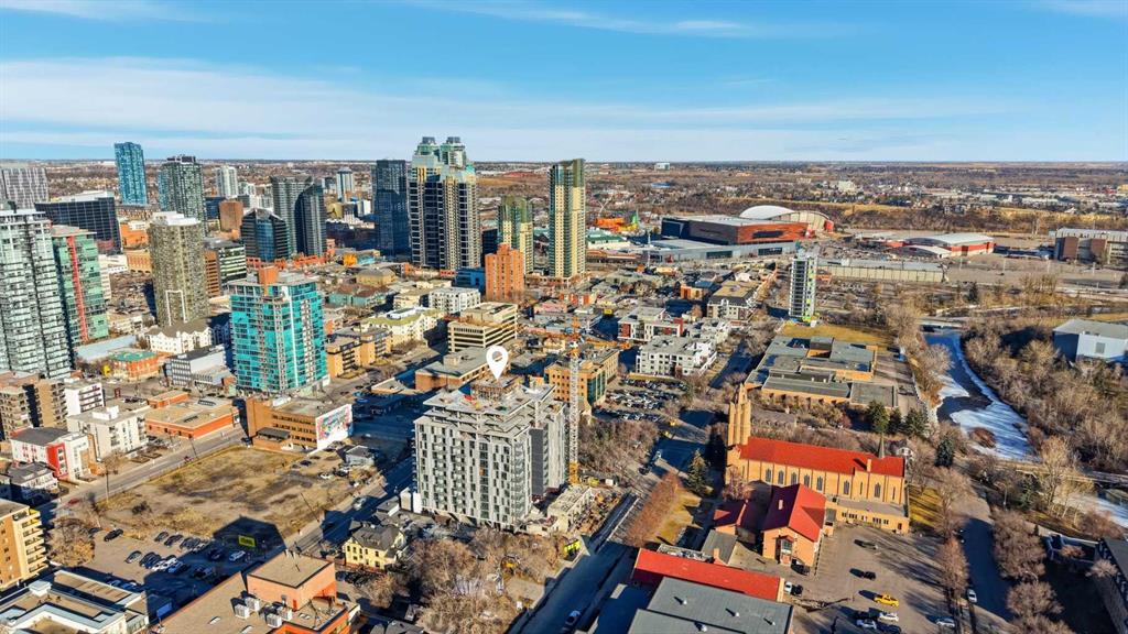 Built by Homes by Avi, this beautifully designed studio suite with the Coco floorplan offers modern living in the heart of Calgary’s vibrant Culture and Entertainment District. Steps from the Calgary Stampede, BMO Centre, Scotiabank Saddledome, and the restaurants and nightlife of 17th Avenue, this location delivers exceptional walkability and urban convenience. Nestled within the sought after community of Mission, you’re also moments from boutique shops, acclaimed dining such as Mercato and Añejo, and the world class MNP Community & Sport Centre. Inside, the condo features premium finishes and thoughtful design throughout. A kitchen island/eating bar with white quartz countertops is complemented by sleek white cabinetry, chrome faucets and hardware, and full size stainless steel appliances. Floor to ceiling windows and durable luxury vinyl plank flooring create a bright, contemporary atmosphere. The bedroom area, a 4 piece bath, large closet/storage space & discreet in suite laundry room complete this studio suite. Included roller shade window coverings add everyday convenience. Concrete construction provides lasting durability, while central air conditioning ensures year round comfort. Additional highlights include an assigned storage locker. From this location, you’ll love being able to walk to everything — from Mission’s cafés and shops to the energy of 17th Avenue. Enjoy the Bow River Pathway just minutes away or spend the day exploring the CORE Shopping Centre with more than 120 retailers, including Holt Renfrew. Whether training at the MNP Community & Sport Centre or meeting friends at local favorites like Ship & Anchor or Model Milk, this is urban living at its finest.