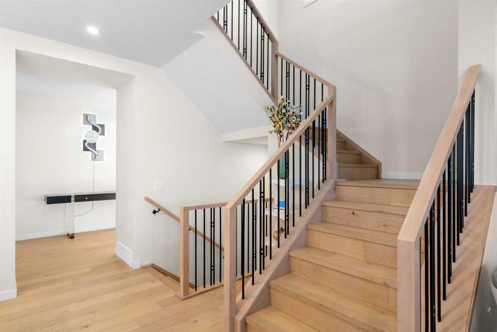 From the moment you arive, the quality is immediately evident. Premium wide-plank engineered hardwood flooring spans both the main and upper levels, complemented by 9-foot ceilings and 8-foot doors throughout. The result is a cohesive, light-filled interior that feels both refined and expansive.