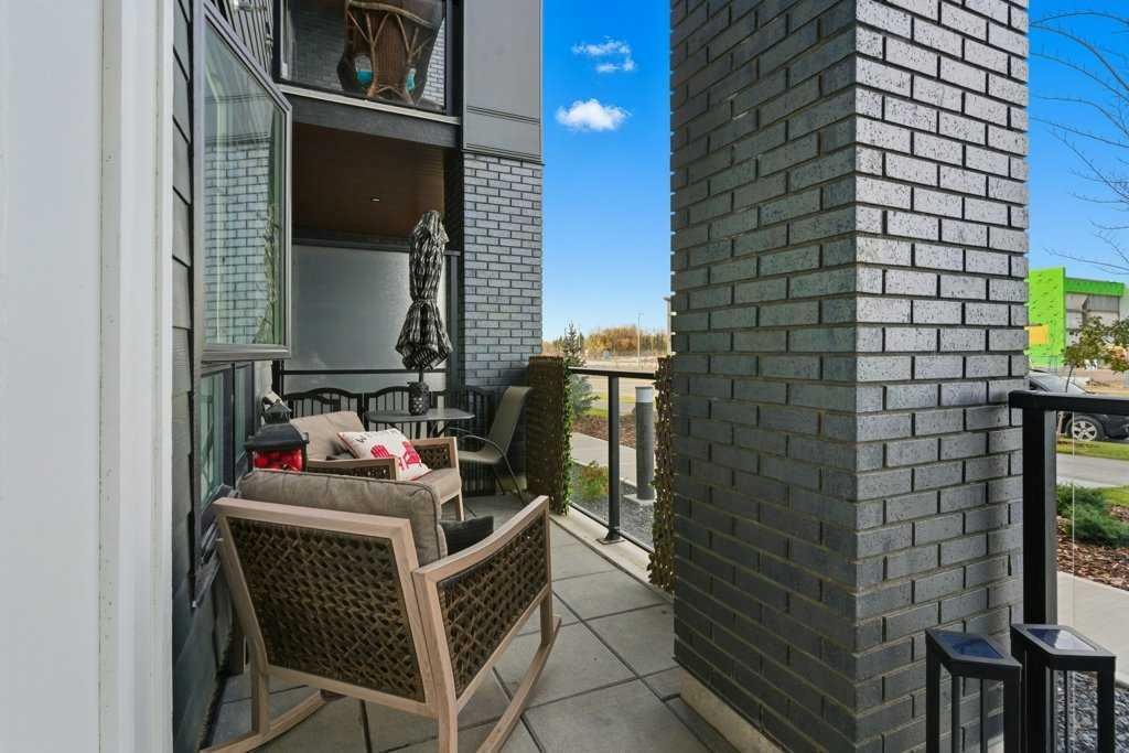 Move in ready!! No waiting for completion, this unit is ready for its new owner! Welcome to #1107, 100 Banister Dr at the beautiful Lawrie Park Condos. This brand new Ava model condo offers the perfect blend of style, functionality, and location. Featuring 2 bedrooms, 2 bathrooms, and over 840 sq ft of thoughtfully designed living space, and over $12,000 in upgrades, this home is ideal for anyone seeking comfort, convenience, and modern living. Only 15 minutes south of Calgary in one of Okotoks newest communities, this location has it all. Step inside to discover a bright open-concept layout with luxury vinyl plank throughout the unit, beautiful shaker-style cabinets, extra pull-out drawers in the kitchen, quartz counter tops and a seamless flow between the living, dining, and kitchen areas. The primary suite includes a spacious walk-in shower and a custom linen closet for added storage and organization. What truly sets this unit apart is its massive walkout patio — the largest in the entire complex (34 feet)! Other units in the complex have walkouts as well, but none as big and spacious as this one! Enjoy direct street access, making it easy for guests or pet owners to come and go. A phantom screen door and patio gate add extra comfort and convenience. This pet-friendly building also boasts low condo fees, offering exceptional value and peace of mind. Additional features include underground parking, a separate storage locker, and ample street parking right out front. The location can’t be beat — just steps from basketball courts, community garden plots, playground, bike park, a nearby shopping centre, golf courses, enclosed dog park, and a scenic pond with walking paths. Whether you’re looking to enjoy nature, stay active, or explore local amenities, everything you need is right at your doorstep. Move-in ready and loaded with upgrades, this beautiful condo combines modern finishes with unbeatable functionality. Don’t miss your opportunity to call this brand-new home your own — book your showing today!