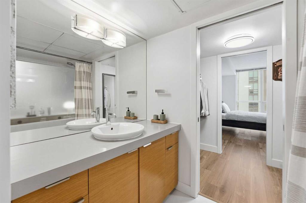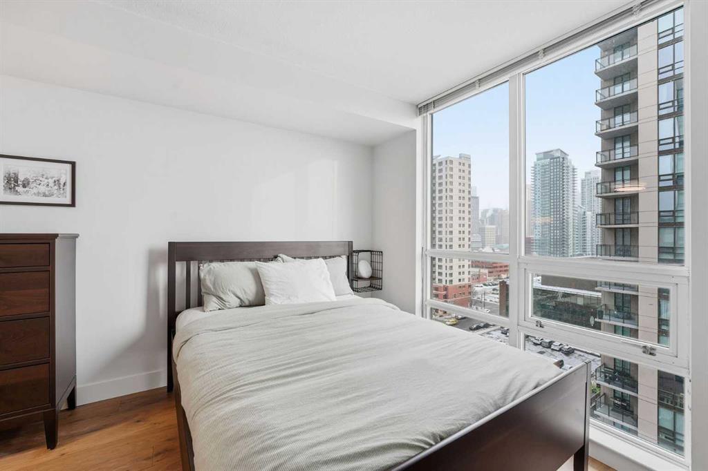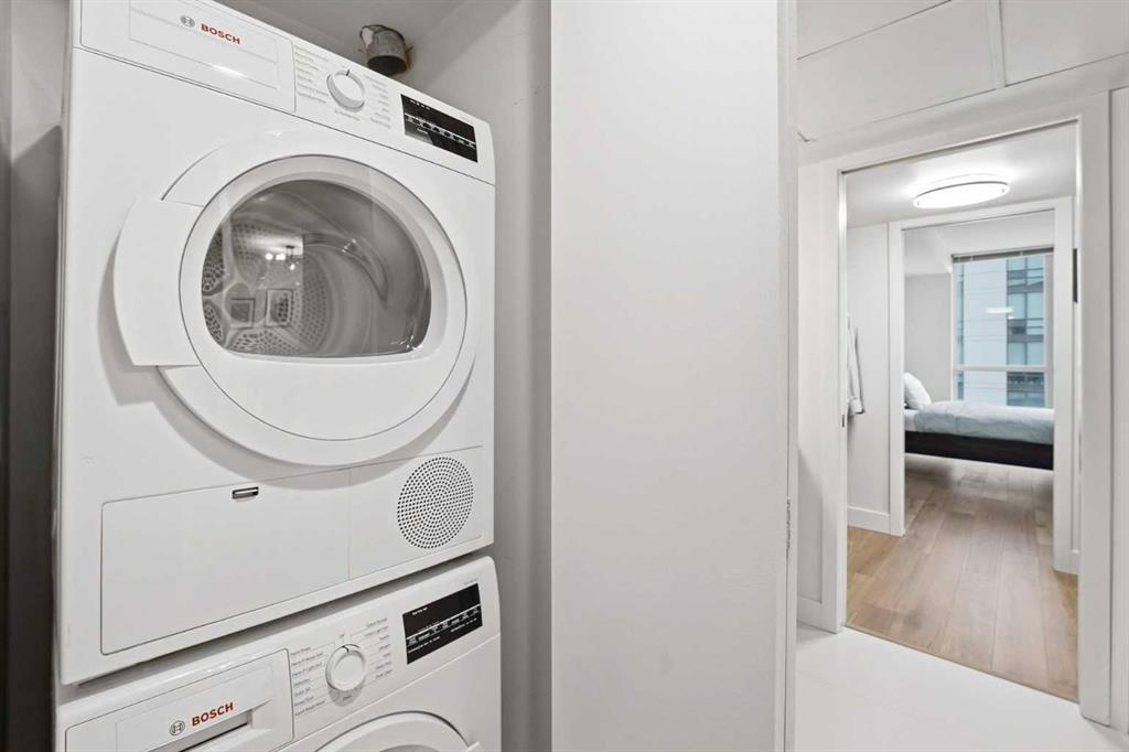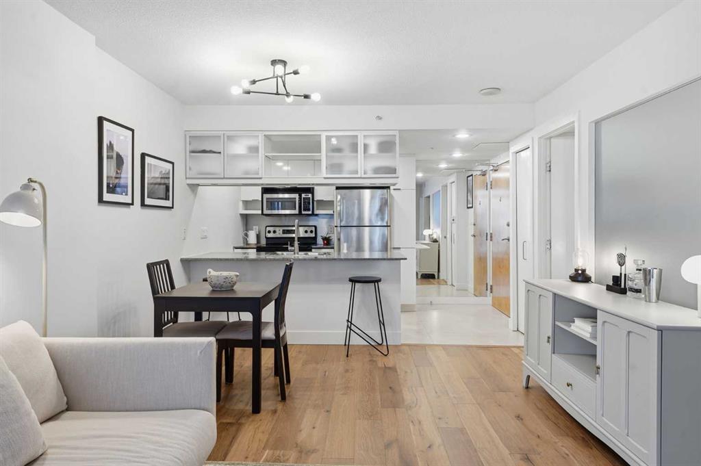 This beautiful WELL-MAINTAINED condo offers a stylish OPEN – CONCEPT layout designed for both everyday living and entertaining. The kitchen features granite countertops and an oversized eating bar that flows seamlessly into the dining nook and living area. ENGINEERED HARDWOOD flooring throughout the main living spaces adds a modern yet HOMEY finish. Step outside to your covered balcony with solid sides — a PRIVATE outdoor space you can truly enjoy year-round. Inside the bedroom, LARGE WINDOWS showcase downtown city lights, while the WALK-THROUGH CLOSET leads to the cheater ensuite. This unit includes a NEW UPGRADED BOSCH IN-SUITE washer/dryer set, AIR CONDITIONING, a UNDERGROUND TITLED PARKING STALL, and a STORAGE LOCKER located in the heated underground parkade. The building is exceptionally WELL RUN and offers a full suite of amenities, including 24-HOUR CONCIERGE ensuring security, a fully equipped GYM, party room, large BIKE STORAGE AREA, guest suites, and underground VISITOR parking. Located in one of Calgary’s most vibrant inner-city neighbourhoods, you’re surrounded by some of the city’s best restaurants, cafĂ©s, and nightlife, with trendy 17th Avenue just steps away. CO-OP is only ONE BLOCK OVER for everyday convenience and groceries, while nearby parks and the Bow River pathway system make it easy to enjoy an active, outdoor lifestyle. It also has excellent access to transit and major routes — including Bow Trail for quick escapes west to the mountains. This is a well-maintained condo in a prime inner-city location, offering lifestyle, convenience, and long-term value.