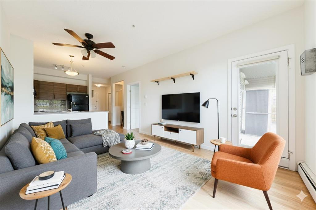 Bright, open-concept living defines this stylish one-bedroom, one-bath condo in Cochrane’s sought-after Sunset Ridge community. Designed for connection and comfort, this 579 sq. ft. ground-floor home welcomes you through a private entry straight onto your gas-line-ready patio — perfect for morning coffee or a cozy evening barbecue under the big Alberta sky.