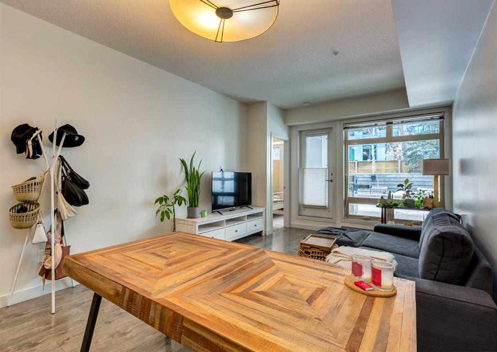 Located in one of Calgary’s most walkable and vibrant inner-city communities, this ground-level, south-facing Mission condo offers an exceptional combination of modern design, thoughtful layout, and an unbeatable lifestyle. Just steps from the Elbow River pathways, Repsol Sport Centre, restaurants, cafés, fitness studios, and everyday amenities, this home truly puts the best of Mission at your doorstep. One of the standout features of this home is its ground-level location, providing a huge private patio that opens directly onto the secured, landscaped courtyard. The fully fenced courtyard includes raised garden beds and is accessed through two locking gates, making it ideal for pet owners and anyone who values seamless indoor-outdoor living. With direct gated access from the patio, coming and going is effortless — perfect for dog owners, entertaining, or enjoying green space without leaving the building. The patio also includes a natural gas BBQ. Inside, 9’ ceilings and a well-designed open layout create a bright and spacious feel. The U-shaped kitchen is finished with quartz countertops, LED accent lighting, and a full suite of appliances including a four-burner gas cooktop, built-in oven, microwave hood fan, two-drawer dishwasher, and garburator. Quartz countertops continue throughout the bathrooms, complemented by motion-sensor LED lighting and modern finishes. The primary bedroom comfortably accommodates a king-size bed and features a walk-through closet leading to a well-appointed ensuite with space-saving pocket doors and excellent storage. A spacious den, positioned away from the primary bedroom, offers flexibility as a home office or second bedroom. In-suite laundry with washer and dryer completes the interior. Additional highlights include a heated underground parking stall with an assigned storage unit, secure bike storage, a car wash bay, and free underground visitor parking. The building is pet-friendly and exceptionally well suited for dog owners. Mission is tough to beat. Whether you value walking to grocery stores, natural food markets, boutique shops, tennis courts, the public library, or some of the city’s best dining and entertainment, this location delivers true inner-city convenience. Modern comfort, rare outdoor space, and an exceptional location!