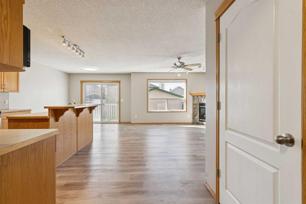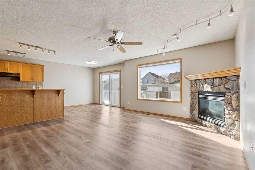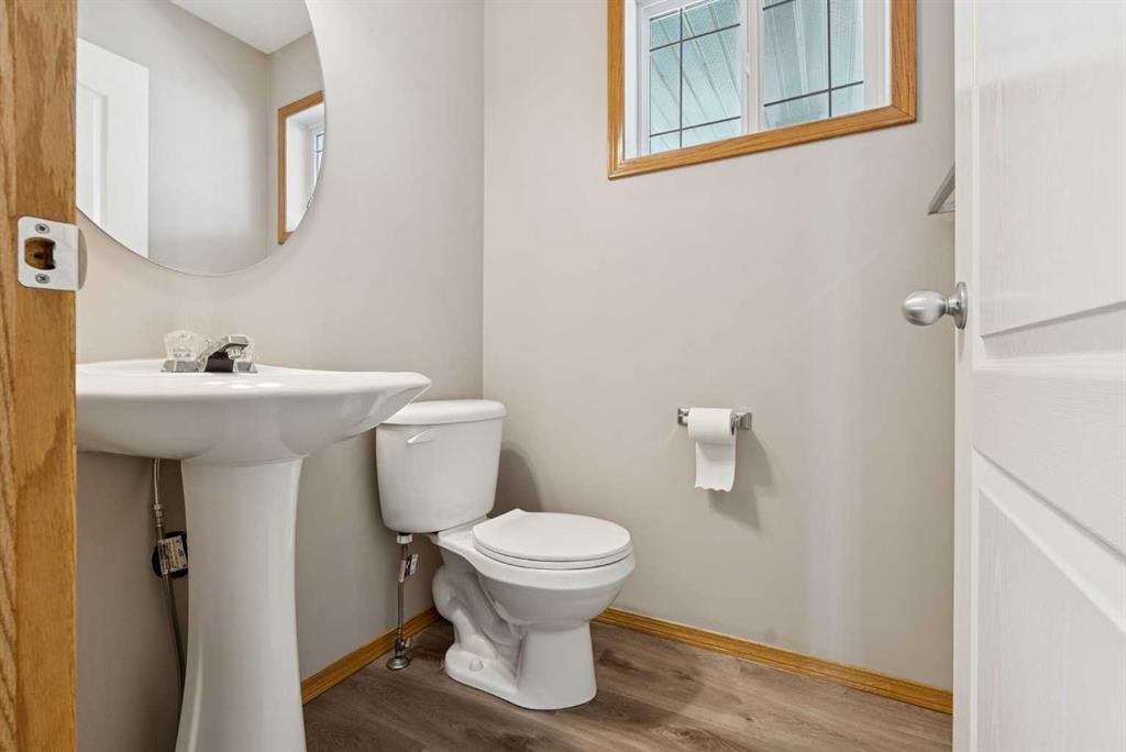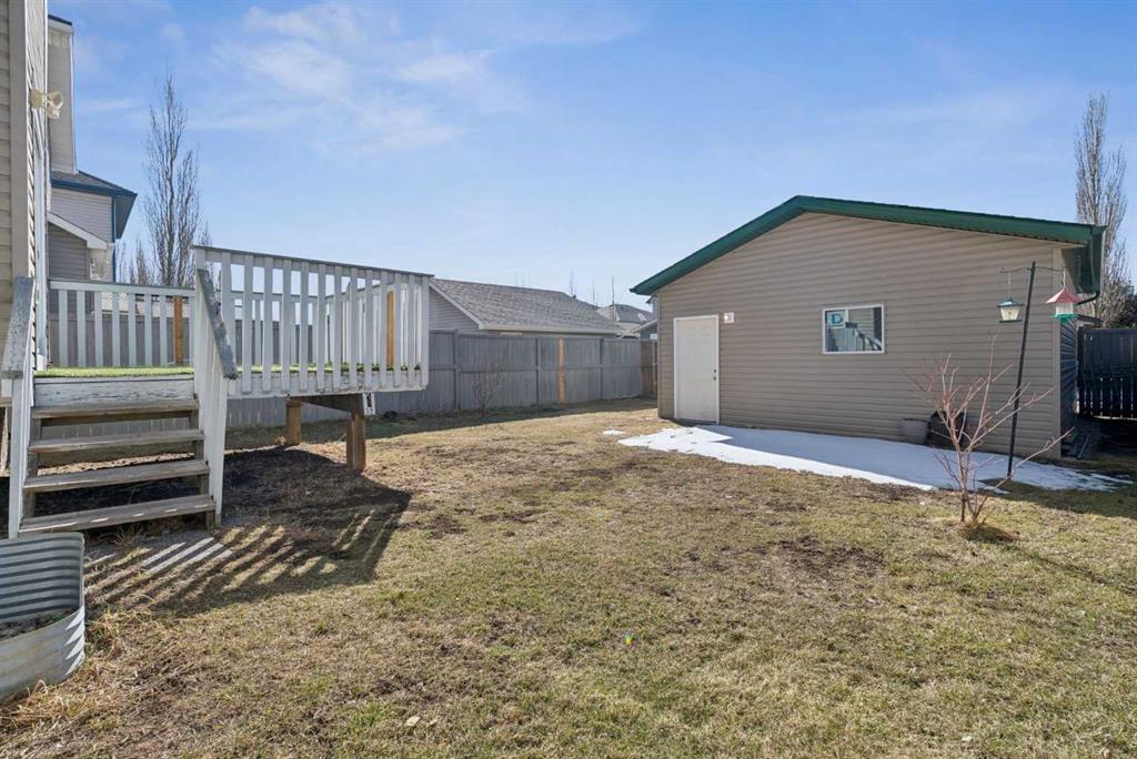 The bright and inviting main floor offers an open-concept layout that’s ideal for both daily living and entertaining. Enjoy a cozy corner gas fireplace in the living room, a well-appointed kitchen with an eating bar and corner pantry, and a dining area with direct access to the backyard deck — perfect for summer BBQs and indoor-outdoor living. Large windows throughout fill the home with natural light, while main floor laundry and a convenient 2-piece powder room add to the home’s thoughtful design. Recent updates, including newer flooring, patio door and fresh paint, create a clean, move-in ready feel. Upstairs, the spacious primary bedroom features a walk-in closet and a private ensuite with a beautiful skylight, creating a bright and relaxing retreat. Two additional bedrooms and a full 4-piece bathroom complete the upper level. The fully finished basement offers even more living space with a generous rec room, an additional bedroom, a 3-piece bathroom, and extra storage—perfect for growing families or hosting overnight guests. Outside, you’ll love the large backyard with plenty of space to relax, entertain, or play. The generous deck includes a BBQ gas line and room for patio furniture, while the yard offers endless potential for gardening, a fire pit, or outdoor activities. The fully insulated and sheeted double detached garage with epoxy-coated flooring adds both convenience and durability. Ideally located close to schools, parks, shopping, walking paths, and major commuter routes, this home offers a fantastic lifestyle in a welcoming, family-friendly community.