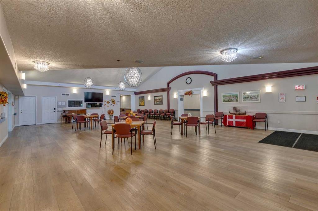 Welcome to adult living (55+yrs) in the established and amenity rich- Dana Village. Most furnishings can be included if easier. MAIN floor unit with private access via the outdoor balcony/deck space.. Central for commuting, LRT, parks/pathways & numerous amenities & services close by. Heated underground parking, carwash, workshop, & fitness/billiards and library. Arranged weekly rides for shopping trips, planned social activities & recreation events. Central dining hall and kitchen set up for residents to enjoy pot lucks and meals. Covered balcony (west facing) into the amazingly landscaped courtyard grounds. Patio has a gas BBQ line, room for deck furniture, gardening and a quiet spot to relax. Balcony has storage and there is additional caged storage space in front of the parking stall. Heated stall is located near the elevator. Unit has been lovingly maintained with recent updates: newer furnace, Central A/C, efficient Stainless Steel appliances, modern luxury vinyl plank flooring, high end kitchen faucet & bath/light fixtures. Versatile floor plan (>820 sq. ft.) features 2 LARGE Bedrooms, 3 piece Bathroom, In-suite laundry, pantry and significant utility area. Decorated in a modern neutral colour palette. Single floor living, accessibility features to help with mobility ease. Perk on main floor is having a dog or cat (board approval) with direct access to outside via the beautiful inner courtyard. Complex is well managed and ready for those seeking their next new chapter in a dynamic, multi faceted setting. Don’t miss this opportunity, call and view today!