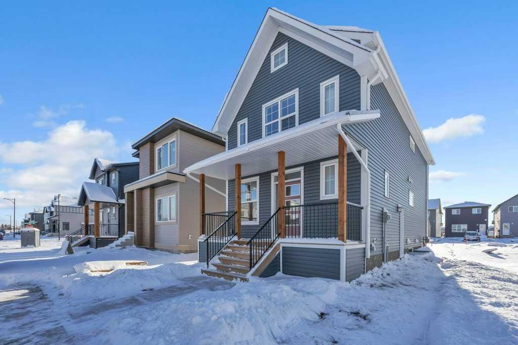 Welcome to this fully upgraded brand new single-family home located in the up-and-coming neighborhood of Chinook Gate in Airdrie. This is a fantastic opportunity to own a Brand new home without the wait! Built in 2024, this never-occupied home includes the Alberta New Home Warranty from the builder. With approximately 2632 sq ft of living space, this property features an ILLEGAL BASEMENT SUITE, a concrete parking pad, 4 bedrooms, 3.5 bathrooms, 2 living areas and a lot more to explore. The main floor boasts two spacious living areas, a generously sized kitchen with a pantry, and a dining area. Step inside to find a bright and inviting first living area with a large window. Sleek stainless steel appliances give the kitchen a stylish edge, while the open layout seamlessly connects to the family room, which is filled with natural light from large windows—perfect for entertaining or cozy family gatherings. Upstairs, you’ll find the primary bedroom, a bonus room, a laundry room, two bathrooms, and two additional well-sized bedrooms. The primary bedroom stands out with its luxurious ensuite bathroom, walk-in closet, and private balcony. The bonus room offers flexible space for an office, playroom, or extra living area, and the laundry room is conveniently located on this level. 2 other good size bedrooms which share a common bathroom completes the upper floor. The ILLEGAL BASEMENT SUITE includes a side entrance, a spacious bedroom, a bathroom, a kitchen, and a large living area with a huge window for natural light. The property also comes with a concrete garage pad ready for future garage development. Photos are taken before the tenants move in. Book your private showing today!