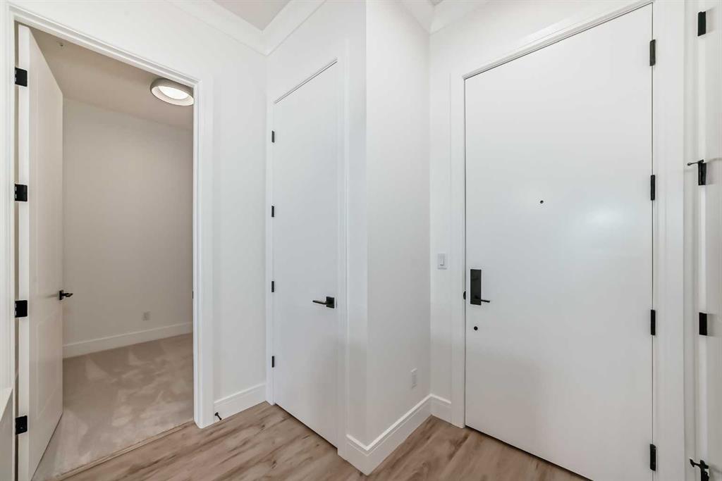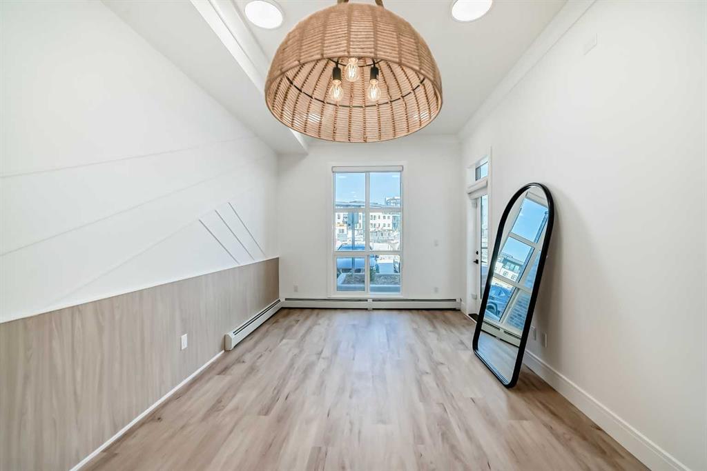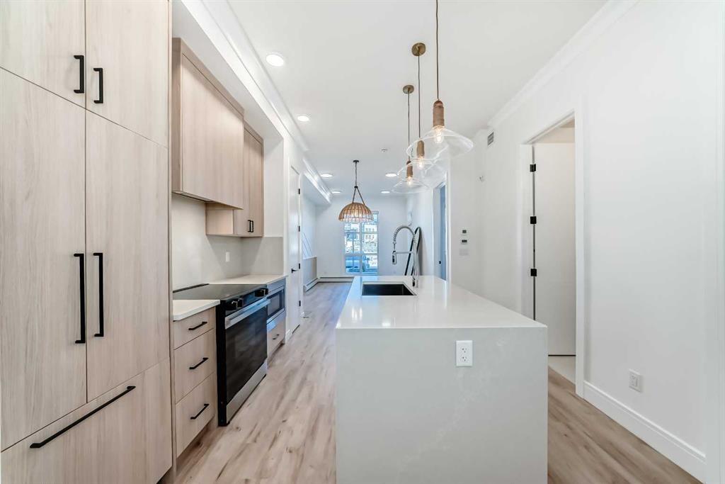 Step into modern luxury with this brand-new 1 bedroom + den 603 square feet home located on the ground floor of the award-winning University District. From the moment you walk in, you’ll notice the attention to detail—sleek quartz countertops, panel-ready appliances, soft-close cabinetry, and designer finishes that make every space feel elevated. The thoughtful floor plan includes a bright entrance, a contemporary kitchen with dining area, a spacious living room with oversized windows, and direct access to your private patio—perfect for morning coffee or winding down in the evening. The primary bedroom features a walk-in closet and a 4-piece bath completes the floor plan of this new and never-occupied home. A versatile den offers endless possibilities, whether as a home office, study space, or guest room. Added conveniences include in-suite laundry, underground parking, and a dedicated storage unit. Outside your door, you’ll enjoy a vibrant, walkable community with boutique shops, cafés, restaurants, parks, and green spaces. The building itself offers exclusive brand-new amenities designed to complement your lifestyle. With quick access to the University of Calgary, Market Mall, Foothills Medical Centre, and endless conveniences, this home offers the perfect blend of luxury and location. This is more than a home—it’s your gateway to elevated living in one of Calgary’s most sought-after communities.