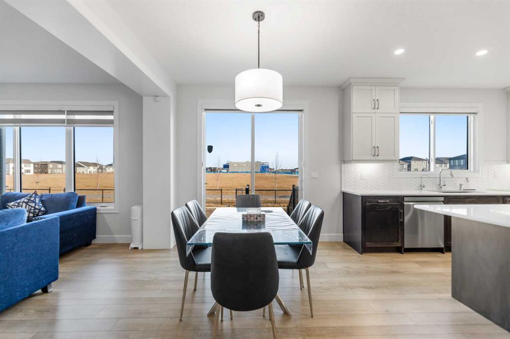 Welcome to 1116 Southwinds Green SW, located in the vibrant and family-oriented community of Southwinds in Airdrie. Backing directly onto green space, this beautifully designed 5-bedroom, 4-bathroom home including $100k of upgrades from the builder. Offers 2 primary bedrooms, the perfect balance of modern comfort, functional living, and an exceptional location. From the moment you arrive, the charming front porch creates inviting curb appeal and a welcoming first impression. Step inside to discover a thoughtfully designed open-concept main floor featuring luxury vinyl plank flooring, elegant tile accents, and plush carpeting throughout. Large windows flood the home with natural light, enhancing the bright and airy atmosphere. The spacious living room flows seamlessly into the contemporary kitchen, making it ideal for both everyday living and entertaining. The kitchen is well-appointed with sleek cabinetry, stainless steel appliances, built in microwave and oven a large central island with seating, and a walk-in pantry offering ample storage. The adjacent dining area overlooks the backyard and green space, creating a peaceful backdrop for family meals and gatherings. A highly desirable main-floor bedroom and full bathroom provide flexibility for guests, extended family, or multi-generational living. The main level also features a convenient mudroom, offering practical storage and organization for busy households. Upstairs, you’ll find a generous bonus/family room that provides additional living space perfect for a media area, playroom, or home office. The primary suite serves as a private retreat, complete with a spacious walk-in closet and a well-appointed ensuite featuring dual sinks and a large shower. Don’t stop there, the second well sized bedroom also features a ensuite and walk in closet. Additional bedroom is generously sized and are complemented by well-designed bathroom to comfortably accommodate a growing family. The backyard opens directly onto green space, offering added privacy and a wonderful setting for outdoor relaxation, children’s play, or entertaining. With its functional layout, modern finishes, front porch charm, mudroom convenience, pantry storage, and premium green space location, this home is ideal for families seeking space, comfort, and community in one of Airdrie’s most desirable neighborhoods.