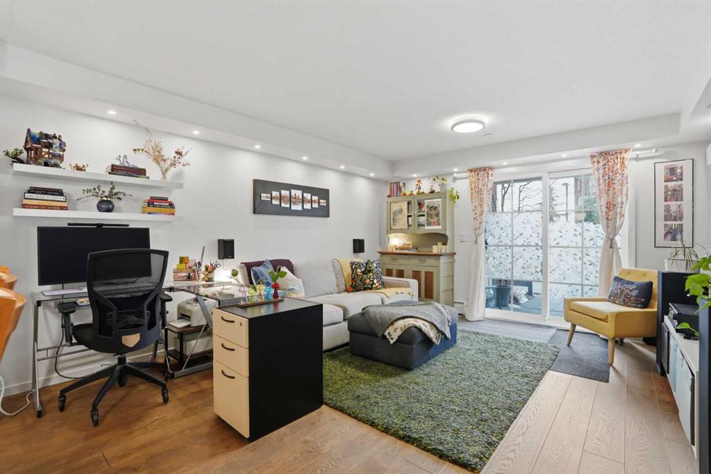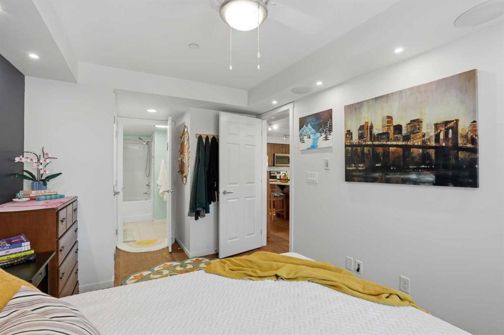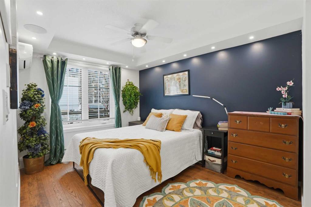 Welcome to this beautifully upgraded former show suite, where thoughtful design meets everyday comfort. This 1-bedroom, 1-bathroom home offers a warm and inviting vibe from the moment you walk in – truly feeling like a big, cozy embrace. Situated on the main floor, this unit provides convenient, private access without the need to pass through the building, making it ideal for ease of living. Just steps from your patio, you’ll find your above-ground parking stall, and underground, additional secure storage. Inside, the home is rich with upgrades throughout. The gorgeous kitchen features a stunning stone island, warm-toned shaker-style cabinetry, and stainless appliances, while the engineered wide-plank hardwood flooring flows seamlessly through the space. In-ceiling speakers and upgraded recessed lighting create an elevated ambiance, perfect for both relaxing and entertaining, while the mini-split A/C in the living room & bedroom keeps you calm, cool & collected. The thoughtful layout includes in-suite laundry and substantial in-suite storage, ensuring functionality matches the home’s beauty. This pet-friendly building (with board approval – please refer to bylaws) is designed with your furry companions in mind, offering dedicated pet areas while also being in close proximity to a nearby nature reserve with scenic walking paths. Reasonable condo fees just add to this units appeal. Located in the young, vibrant community of Copperfield, you’ll enjoy easy access to amenities, shopping, and major transportation routes – bringing convenience right to your doorstep. This home offers a perfect blend of style, comfort, and practicality – making it a smart move.Â