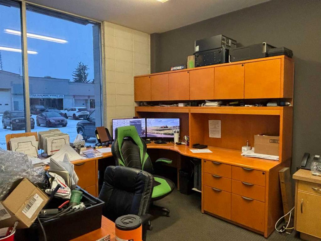 Rare Opportunity to purchase a small bay warehouse in Foothills Industrial Park. Bay has been developed with a functional layout of 3 private offices, washroom, shop washroom and mezzanine storage.