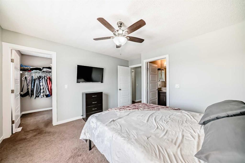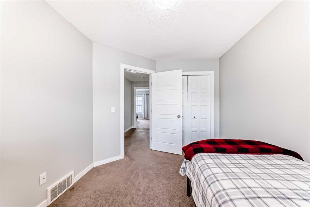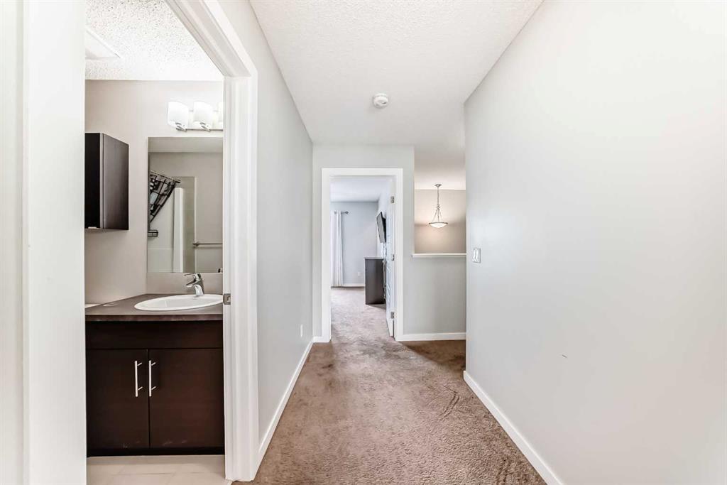 Welcome to this beautifully maintained two-storey townhome in the highly sought-after community of New Brighton. Offering over 1,500 sq ft of living space and an attached heated double garage, this home combines comfort, style, and functionality. Step inside through the spacious front entry and head up to the bright open-concept main living area, featuring hardwood flooring, and large windows that fill the space with natural light. The kitchen is a true highlight and a chef’s dream, complete with custom cabinetry, modern tile backsplash, a large island, and upgraded appliances including a Maytag refrigerator, double oven, and dishwasher. The adjacent dining area provides plenty of space for entertaining and offers access to a private balcony — perfect for summer BBQs. A conveniently located half bathroom completes the main level. Upstairs you’ll find three spacious bedrooms, all featuring large windows. The primary suite includes a walk-in closet and private ensuite, while the two additional bedrooms offer generous closet space and share a beautifully finished full bathroom with modern tile work. The upper floor also features a large laundry area with built-in cabinetry and storage, along with a Samsung washer and dryer. A tucked-away bonus storage room on the staircase landing offers the perfect place for seasonal items or a fun hideaway for kids. The lower level provides another versatile room, ideal for a home office, workout space, or flex room, along with access to the utility room and attached garage. Located in one of Calgary’s most family-friendly communities, New Brighton offers excellent schools, nearby shopping, and quick access to major roadways. Residents also enjoy access to the New Brighton Clubhouse, featuring a water park, hockey rink, tennis courts, and event facilities. Don’t miss your chance to own this exceptional home — book your private viewing today!