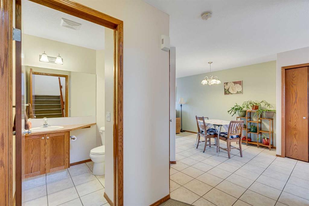AMAZING FULLY DEVELOPED – 3 BEDROOM – 2.5 BATHS – NO CONDO FEES !! Designed to maximize the living areas with no wasted space this family sized townhome is located in downtown Strathmore within walking distance to shopping and schools. The main floor offers a brightly lit open concept floor plan with a spacious living room that will accommodate a sectional sofa and more. The open ended dining area is positioned between the working kitchen and the living room. An abundance of oak cabinetry boasts plenty of upper and lower cabinets. There is a very large storage area next to the kitchen that can be combined as a walk in pantry and broom closet. A private 2 pc bath is just off the back landing and away from the kitchen area. Upstairs you will find a primary bedroom with a walk in closet and a four piece ensuite bath overlooking the quiet rear yard and an additional two bedrooms that share a four piece bath. The lower level boasts an open family room area and laundry area. Direct access from this level leads to the single attached insulated garage. There is a shed in the fenced rear yard to keep your bikes etc as well as any gardening tools that you might use to maintain the lovely vegetable garden patch behind the shed. Parking boasts one covered garage space, garage pad and also plenty of street parking. Enjoy the benefits of home ownership in this fantastic townhome with quick possession. Call your favorite realtor today. `