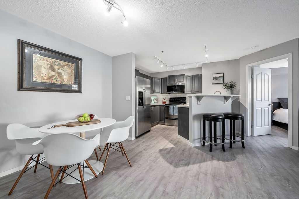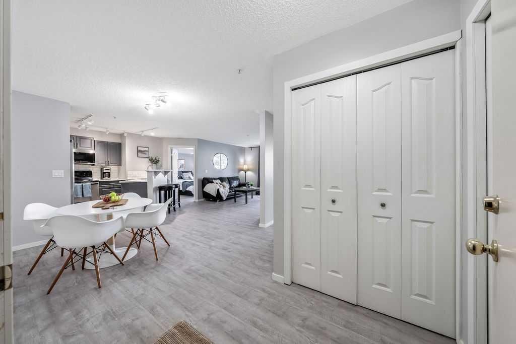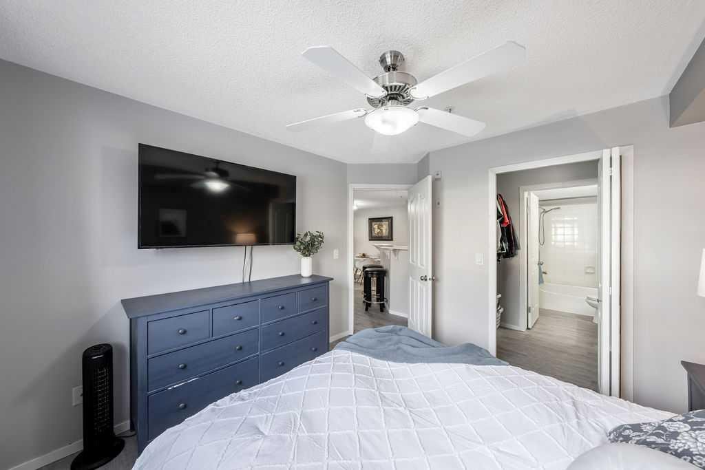 Check out this freshly updated 2-bedroom, 2-bathroom main floor condo, complete with a titled underground parking space, an additional storage unit, and low condo fees that include utilities—all within easy walking distance to groceries, retail shops, and restaurants! Located in the desirable community of McKenzie Towne with convenient access off 130th Avenue, this tastefully updated unit showcases vinyl plank flooring throughout the entire condo, adding both style and durability. The kitchen includes stainless steel appliances, an updated backsplash, modern countertops, ample cabinetry, and a convenient breakfast bar—perfect for casual dining. This open-concept space features a generous living room and is completed by a dining area that adds flexibility for both daily living and entertaining. The bright and spacious primary bedroom features a walk-through closet that leads directly to the private ensuite bathroom. The second bedroom and main bath are thoughtfully positioned to create a more private space, making this unit ideal for small families, roommates, or overnight guests. An in-suite laundry room adds everyday convenience while also providing valuable extra storage space. This unit is located on the quiet backside of the building, away from roadways and parking lots, and presents a large, covered patio off the living room that opens to an expansive green space. Book a showing today and see for yourself the exceptional value and unbeatable convenience this condo has to offer!
