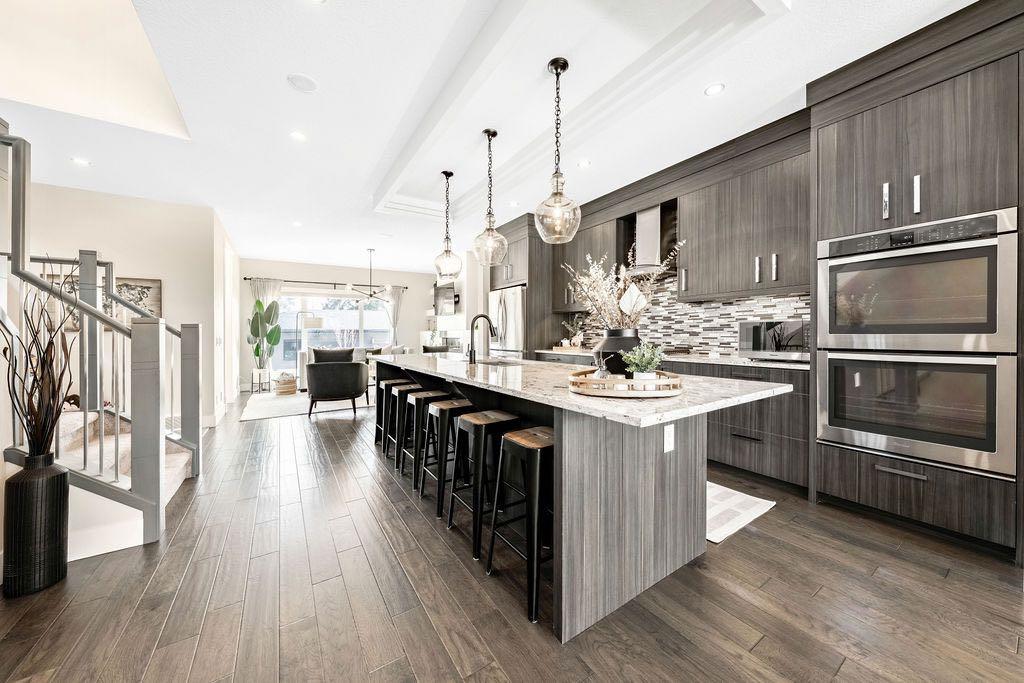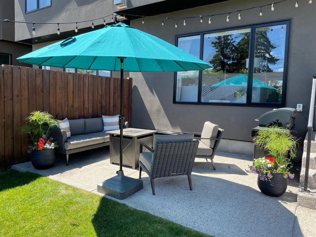 Refined Living, Inner-City! Nestled in the thriving district of Rosscarrock, this meticulously maintained, contemporary two-storey home offers over 3,000 sq. ft. of thoughtfully planned living space. Upon arrival, you’ll notice elevated design and tasteful inclusions. Oversized windows flood the home with natural light, creating a bright, uplifting atmosphere. The free-flowing floorpan transitions from the spacious front dining area to the gourmet kitchen. Here you’ll find high-end finishings including premium engineered hardwood flooring, smooth granite countertops, custom cabinetry, a gas range, double wall oven, Blomberg dishwasher (2025) and French Door refrigerator with in-door-ice + water and an exterior beverage drawer. The eatery flows effortlessly into the inviting family room, complete with custom built-ins, a linear gas fireplace and a practical flex area and 2 piece powered room. Ideal for relaxing and entertaining inside or out on the patio for summer BBQs with a gas hookup in your fully landscaped, private, fenced back yard this home is comfortable through all seasons. The upper level is well appointed with soaring vaulted ceilings that give the stunning primary bedroom a truly upscale feel, complete with a luxurious 5-piece ensuite boasting a stand alone soaker tub, dual vanity and rainfall shower. Two more sizeable bedrooms, and an additional 4-piece bathroom, a dedicated upper level laundry room featuring granite countertops, custom cabinetry and a sink complete the upper level. A highly practical, thoughtfully laid out, fully developed lower level, open to the floor above, continues to impress with 9-foot ceilings, a spacious fourth bedroom, full 4-piece bathroom, a new 50 gallon hot water tank (2025), additional built-ins, including a wet bar and a spacious entertainment room have fully finished this basement. Throughout the home, you’ll appreciate elegant inclusions and attention to detail, with: