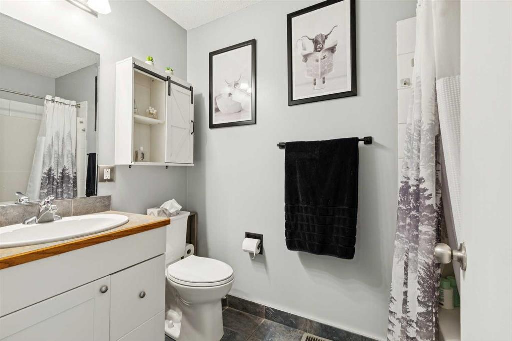 This inviting home offers a functional layout with comfortable living space, durable laminate flooring, and fresh neutral paint throughout. The eat-in kitchen is practical and welcoming, featuring stainless steel appliances and full-height cabinetry. The home includes three bedrooms above grade, plus a fourth bedroom in the basement, along with a large undeveloped rec room offering future potential. Bathrooms have been updated with new toilets, including a convenient 2-piece on the main floor and a 4-piece main bath. A high-efficiency furnace provides reliable heating and improved energy efficiency. Outside, the private fenced backyard offers a great space for relaxing or entertaining, and the covered carport provides year-round vehicle protection. Located on a quiet street close to parks, schools, shopping, and other amenities, this property presents a solid opportunity for first-time buyers, downsizers, or investors looking in Okotoks.