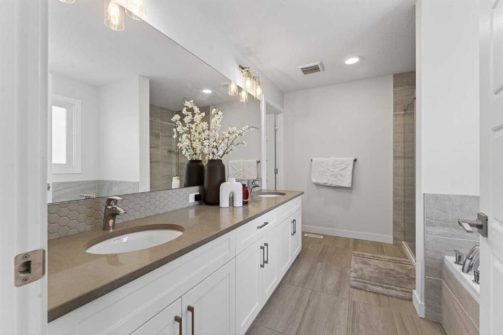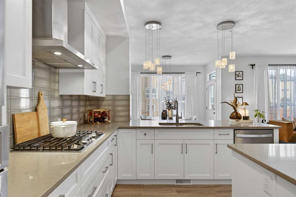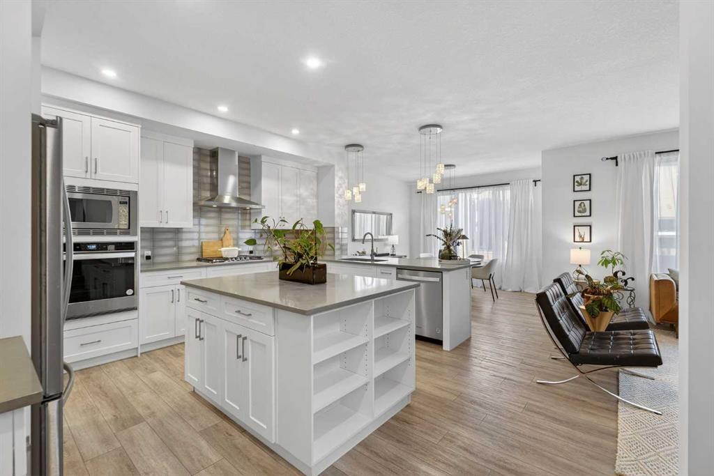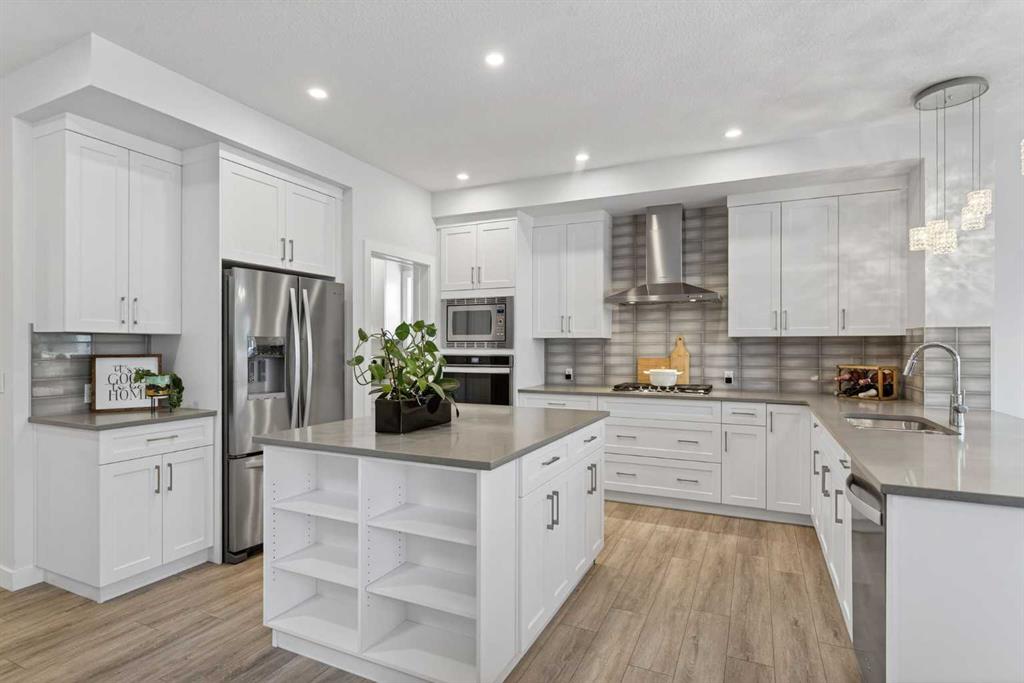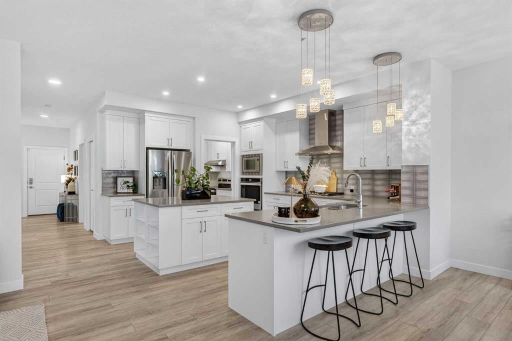 RARE 8,700 SQ+ FT LOT | 2022 BUILT | 2,638 SQ FT | 5 BEDROOMS | 3.5 BATHROOMS | MAIN FLOOR BEDROOM/FLEX ROOM | SPICE KITCHEN + PANTRY | EXECUTIVE U-SHAPED KITCHEN WITH ISLAND | 2 PRIMARY SUITES WITH ENSUITES | VINYL FLOORING ON MAIN | SEPARATE ENTRANCE TO BASEMENT | 9 FT BASEMENT CEILINGS | HUGE CONCRETE DECK | BACKYARD FULLY FENCED 2024 | OVERSIZED CONCRETE DRIVEWAY | QUIET CUL-DE-SAC | WALKING DISTANCE TO SCHOOL, PARKS & PATHWAYS | MOVE-IN READY. Welcome to this beautifully maintained 2022-built detached home in the highly desirable community of Kinniburgh South in Chestermere. Offering 2,638 sq ft of living space on a rare 8,700+ sq ft lot, this impressive property is located on a quiet cul-de-sac and has been lovingly maintained by its original owners.