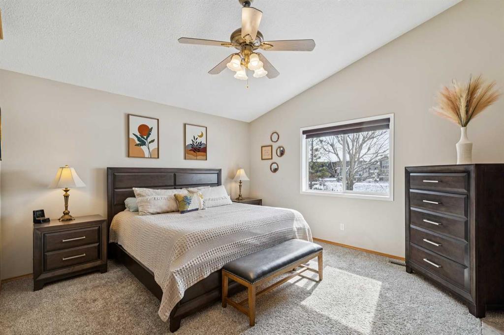 BEAUTIFULLY MAINTAINED BUNGALOW in sought-after Chesterview Estates is an INCREDIBLE opportunity! With nearly 3,000 sf of developed space, this immaculate and BRIGHT home welcomes you with HIGH CEILINGS, GLEAMING HARDWOOD FLOORS, and a thoughtfully designed layout that blends comfort and functionality. The spacious main level features a stunning KITCHEN complete with GRANITE COUNTERTOPS and STAINLESS STEEL APPLIANCES, pantry, tons of counter and storage space – perfect for everyday living and entertaining alike. The inviting living room is anchored by a DOUBLE-SIDED FIREPLACE that also serves the PRIMARY BEDROOM, creating a warm and relaxing retreat. A second main floor BEDROOM is ideal for a home office or traditional set up. Main floor also boasts a large formal dining room, LAUNDRY ROOM, and second full bathroom for convenient single-level living. The FULLY DEVELOPED BASEMENT expands your living space with 2 ADDITIONAL BEDROOMS, full bathroom, lush carpet, and plenty of room for family, guests, or a home gym. There is also an oversized storage/mechanical room with extra cabinetry, sink, and work space fit for any hobby. This FULLY AIR-CONDITIONED home ensures year-round comfort in every season. Step outside to enjoy the SOUTH-FACING BACKYARD, complete with a HOT TUB, BBQ GAS HOOKUP, and a PRIVATE FENCED YARD backing onto a tranquil canal, with VIEWS OF LAKE CHESTERMERE. Whether you’re hosting or unwinding, this outdoor space is truly special. The OVERSIZED GARAGE is a standout feature, fully equipped with a WORK BENCH and GAS HEATER—perfect for hobbyists or additional storage. The wide lot also allows for RV PARKING along the side of the garage, offering incredible flexibility. Located in an AMAZING LOCATION, this home offers the perfect balance of privacy and accessibility. Don’t miss your chance to own this exceptional property in one of the area’s most desirable communities!