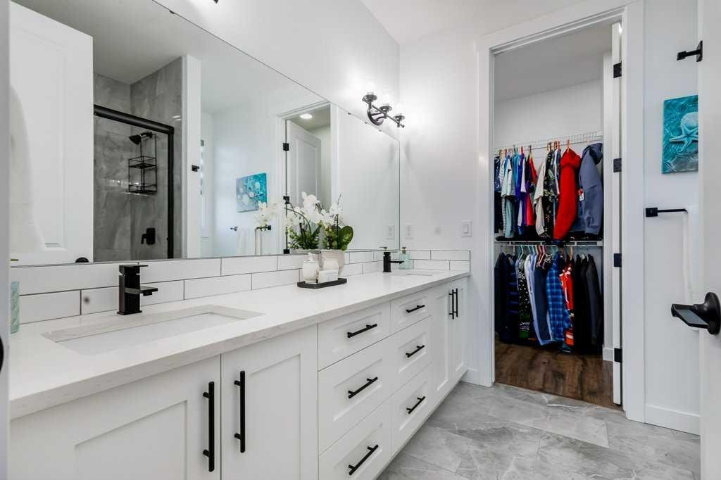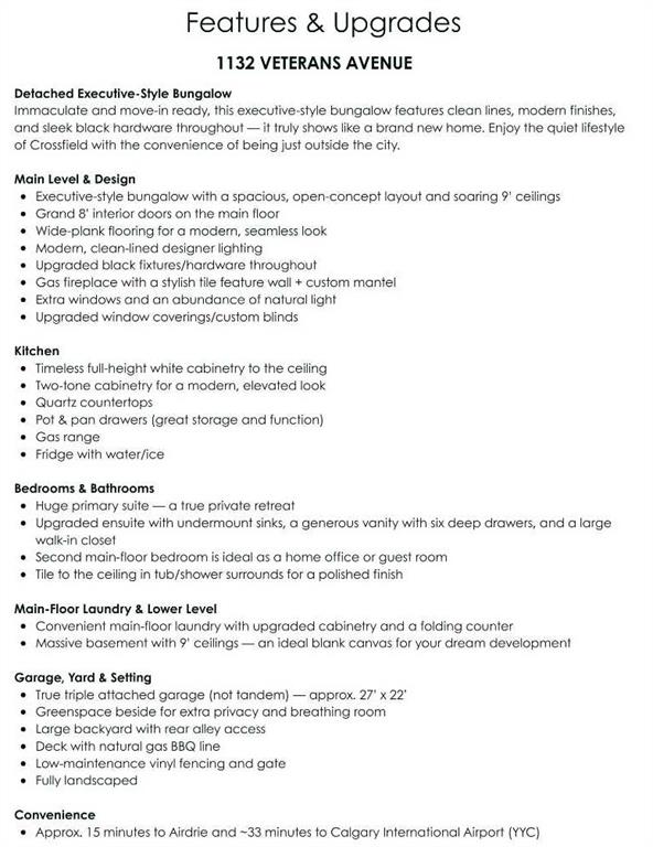 What a RARE opportunity to own a BUNGALOW offering an ATTACHED TRIPLE GARAGE and 9-foot ceilings on BOTH LEVELS — a combination that is seldom available! From the moment you enter, the elevated ceiling height and upgraded 8-foot doors create an immediate sense of space and quality. Knockdown ceilings and modern, cohesive finishes carry that refined feel throughout the home. The kitchen is timeless and well-appointed with classic white cabinetry, quartz countertops, black hardware, and contemporary lighting accented with subtle gold details. A generous dining area flows seamlessly to the rear deck, complete with a gas line for BBQs, along with a lower patio for additional outdoor living space. Space for an RV as well. The vinyl-fenced yard offers back-alley access and a quiet setting where you can step outside and enjoy a touch of nature. The living room is warm and inviting, anchored by a custom mantle fireplace and large windows that bring in excellent natural light. The HUGE primary suite is designed as a true retreat and features a spa-like ensuite with an oversized shower that has tile finished to the ceiling, double undermount sinks with QUARTZ countertops, six functional drawers for storage, and a large walk-in closet. The secondary bathroom also showcases tile to the ceiling, reinforcing the upgraded finishes throughout. A second bedroom completes the main level. The main-floor laundry room has been thoughtfully upgraded with custom cabinetry and additional space for drying racks and organization. Downstairs, the massive basement mirrors the main floor with 9-foot ceilings and offers three large windows, a bathroom rough-in already in place, and utilities neatly positioned in one corner — creating an ideal and flexible layout for future development. Create the perfect space for a media room, home gym, pool table, or whatever you can dream up. Immaculately maintained and lightly lived in, this bungalow offers rare garage space, elevated ceiling height, and quality upgrades in a peaceful location. Book your showing today!