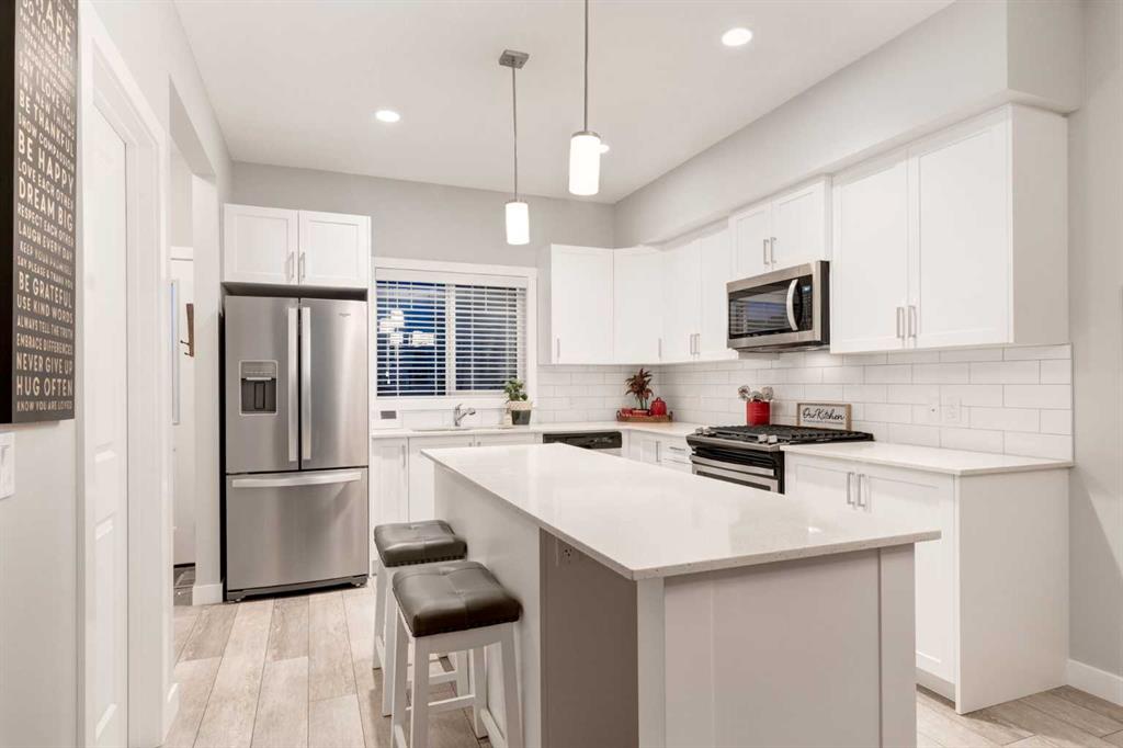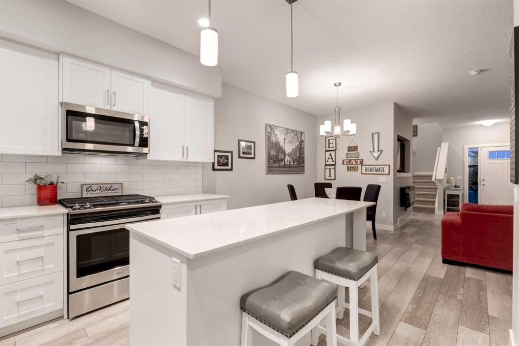 This IMMACULATE 4-BEDROOM, 3.5 BATH home boasts over 2000 SQ FT of living space highlighted by a charming FRONT VERANDA, a thoughtfully designed BACKYARD and an INSULATED DOUBLE CAR garage. MODERN and STYLISH, this BRIGHT and INVITING home features 9’ CEILINGS, a NEUTRAL COLOR pallet and an OPEN CONCEPT. From the welcoming front entry, the inviting living room with FIREPLACE flows seamlessly into the dining room and CHEF’S KITCHEN, which features AMPLE cabinetry, stunning QUARTZ countertops, UPGRADED S/S APPLIANCES including a gas stove, a large ISLAND with breakfast bar and beverage fridge, and an OVERSIZED PANTRY. The main level includes a 2pc Bath and well-designed Mud Room offering direct backyard access. The upper level is BRIGHT and AIRY with AMPLE NATURAL LIGHT, offering Two Generously Sized bedrooms, a Full 4pc Bathroom, convenient UPPER-FLOOR LAUNDRY and the PRIMANRY SUITE with Private 3pc.ENSUITE and a Very Sizeable WALK-IN closet. The FULLY FINISHED BASEMENT provides a spacious FAMILY ROOM, a Full 4pc Bathroom and 4th BEDROOM complete with a large WALK-IN closet. Additional STORAGE can be accommodated in the utility room and under the stairs. Outside you will find that this home is SET BACK FROM THE STREET and fronts onto a GREENSPACE creating a sense of OPENNESS and PRIVACY with views from the front veranda. The THOUGHTFULLY LANDSCAPED backyard is FULLY FENCED, offering a sun filled PATIO perfect for entertaining or unwinding. The DOUBLE CAR GARAGE is fully drywalled and insulated, roughed in for a future heater and has by an ADDITIONAL PARKING PAD. Located in the WELCOMING Community of MIDTOWN, this home is CLOSE to parks and playgrounds, schools, shopping and major highway access, offering a CONVENIENT and simplified lifestyle! Call to view today!