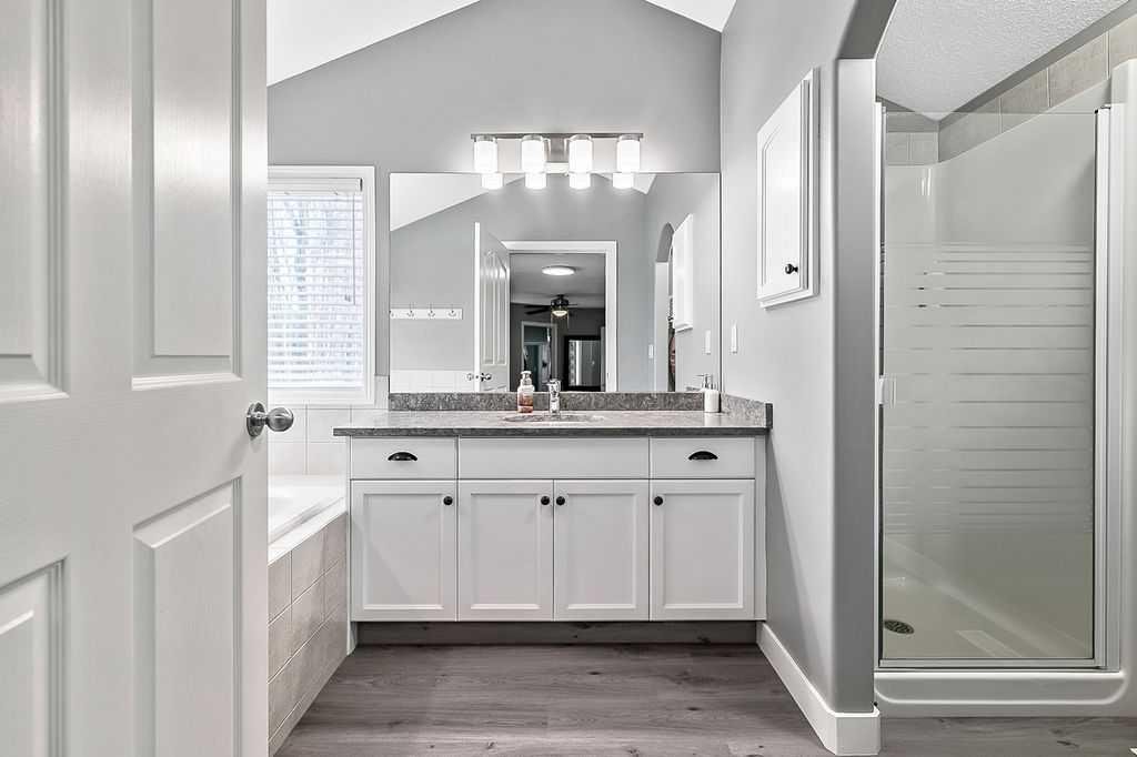 OPEN HOUSE Saturday February 14th 12:00 to 2:30. The street you have been waiting for. Proud original owners, meticulously maintained and thoughtfully updated throughout. As you arrive, notice the updated exterior including siding, 30 year shingles (installed in 2013), an extended driveway, and extra street parking. This is a desirable corner lot with no sidewalks to shovel. A quaint front patio invites you to enjoy the front yard, friendly neighbours, and strong sense of community. Step inside to fresh paint, knockdown ceilings, and vinyl plank flooring that flow seamlessly through the main level. The open concept living area has been beautifully updated with a sparkling white kitchen, perfectly contrasting backsplash, and quartz counters. The refrigerator, induction stove, and microwave have all been updated. A large walk-in pantry features solid shelves and drawers to keep everything neat and organized. East facing windows allow the morning sunshine to pour in while offering lovely views of the backyard and green space. A two-piece bathroom and convenient main floor laundry, complete with a Bosch washer and dryer, are perfectly tucked away. Upstairs, the vaulted bonus room features a huge west facing window and a door that keeps sound contained while others are sleeping. Central air conditioning ensures comfort year round with all of these expansive windows. The second wing of the upper level offers generous secondary bedrooms and a renovated four-piece bathroom. The primary bedroom is a true retreat with a renovated ensuite designed two steps up, complete with an added privacy door that was not part of the original builder plan. The walk-in closet is impressively large and hard to outgrow. The basement development feels brand new and has been gently used. It offers excellent additional living space with a family room, bedroom, and fourth bathroom, making it ideal for guests or teens wanting their own space. Take a peek in the garage and you will notice it is as tidy as the home. Epoxy flooring makes clean up easy, with plenty of room for two vehicles. The backyard is just as impressive, featuring a large deck, fire pit area, and RV parking pad. Underground sprinklers include a timer and online access via the Hydrowise app. Celebrate special occasions or cheer on your favourite sports team with Trimlights permanent under eave exterior lighting. This home is truly move in ready, and only one lucky buyer will have the opportunity to call it theirs.