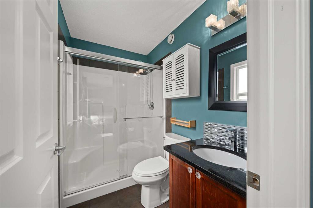 Upstairs, you’ll find three good-sized bedrooms. The primary suite offers a walk-in closet and a 3-piece ensuite with an oversized shower and granite vanity. The two additional bedrooms are connected by a 4-piece Jack and Jill bathroom, finished with tile flooring and granite countertops.