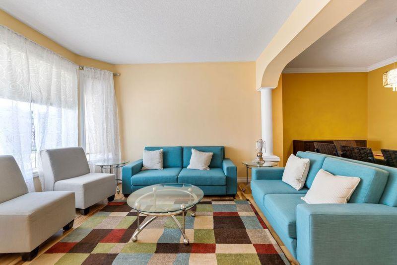 Welcome to this spacious and beautifully upgraded 6-bedroom, 3.5-bathroom walkout home backing onto a serene ravine, offering the perfect blend of privacy, comfort, and functionality. The main floor boasts an open and inviting layout, featuring a bright living room, a cozy family room, a formal dining area, and a sunny breakfast nook that overlooks the ravine. The kitchen is a chef’s dream, complete with solid wood cabinetry, granite countertops, stainless steel appliances, and a stylish insert hood fan. A deck overlooking the ravine is ideal for enjoying your morning coffee. A private office offers a quiet space for work, and the convenient half bath rounds out this well-appointed floor. Upstairs, the large master bedroom with a walk-in closet is a true retreat, featuring a luxurious 5-piece ensuite. The upper level offers 3 additional good-sized bedrooms and another full bathroom, making this home ideal for growing families. The fully finished walkout basement includes two more bedrooms, a full bath, kitchen, a large living area with projector electrical fittings and a covered porch – an illegal suite with a private entrance and excellent potential for legal conversion. The backyard is a great space to enjoy the summers and winters alike. Additional upgrades include a new roof (2025), upgraded hardwood flooring, central A/C, and an insulated, drywalled double garage. Ideally located in a family-friendly neighborhood, this home is just a short walk to Creekside Shopping Centre, SageHill Shopping Centre, Public transit, parks, and offers easy access to Stoney Trail—making daily commutes and errands a breeze. The house is located a short walk from a soccer and a baseball field that gets converted to an ice rink in the winters. This property boasts a bike, transit and amenity score of a 100. This is an excellent opportunity to own a move-in-ready home in a highly desirable and amenity-rich community.