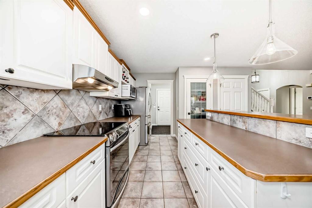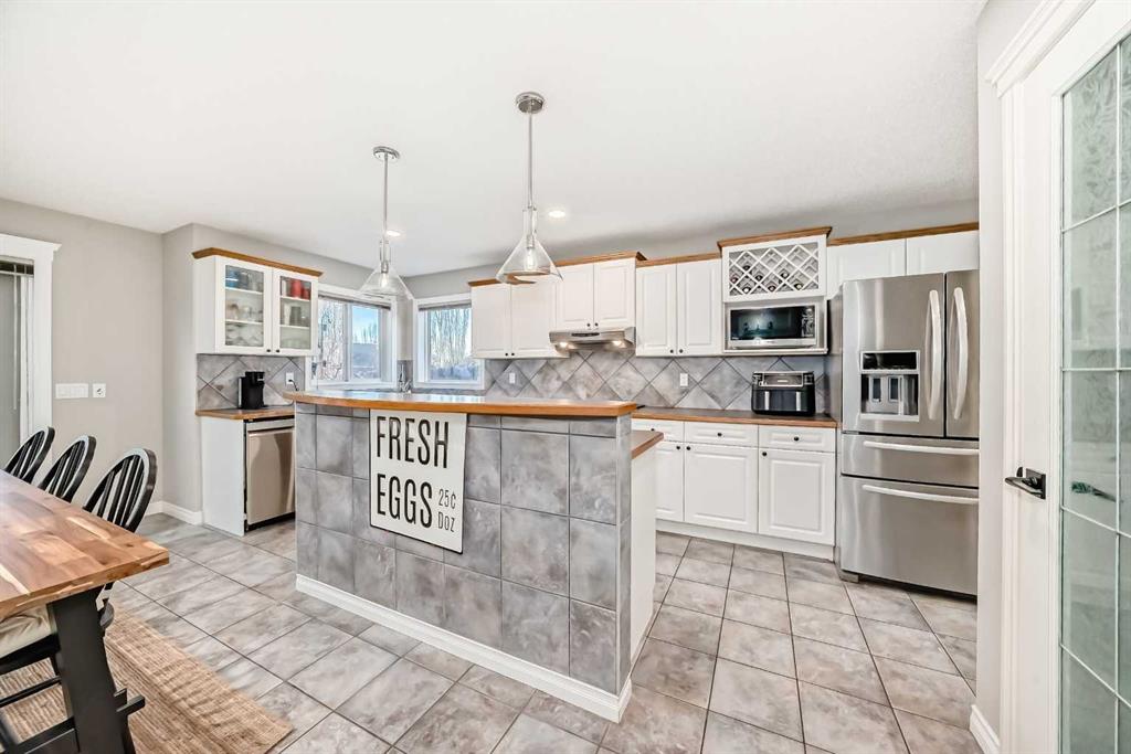 MOVE-IN READY! Four bedroom, 3.5 bath family property in Prime Chestermere Location! Welcome to 115 West Lakeview Circle — an immaculate, bright, and spacious family home perfectly situated within walking distance to two schools, the Golf Course, and just a quick bike ride to the Lake. Nestled in a friendly community and steps from a park, this property combines functionality, comfort, and lifestyle for every member of the family! Inside, a welcoming foyer leads you into a generous layout with a large living room featuring tall windows and a cozy gas fireplace. The open-plan design flows to a dining area with ample space and a bright kitchen boasting plenty of cabinet and counter space, a corner pantry and a raised breakfast bar, ideal for casual meals and entertaining. Main floor laundry with utility sink and a convenient 2-piece powder room complete this level. Upstairs you’ll find a bright bonus room with its own fireplace, perfect for family gatherings or an entertainment area. All three upstairs bedrooms are well-sized. The primary retreat offers a walk-in closet and a luxurious 5 piece ensuite with dual sinks, a separate shower, and a relaxing soaker tub. A full 4 piece bath serves the remaining bedrooms. The fully developed lower level adds even more value with a large rec room, additional bedroom, and full bath, ideal for guests, a home office, or kids’ zone. Step outside to a sunny backyard sanctuary filled with mature trees, shrubs, and a firepit, the perfect setting for summer evenings and outdoor fun. The garage is equipped with its own heater for year-round comfort. Major updates (approx 2015) include roof shingles, hot water tank, and furnace. If parking is an important consideration, the oversized driveway measures approx 21’6″ wide by 31′ long on one side and 39’4″ on the other side. Don’t miss this fantastic opportunity, schedule your showing today!