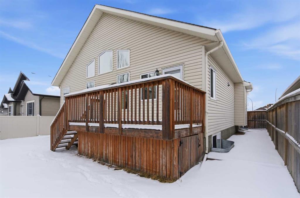 Beautiful and ideally located this 5 bedroom bungalow is well maintained and move in ready! Whether you are a empty nester or a family you will love this functional open concept layout from the moment you come into the vast entryway. The impressive main floor features a modern kitchen with loads of cabinets and drawers, quartz countertops, island with breakfast bar, pantry and stainless steel appliances (brand new dishwasher!) all open to a good sized dining area and the spacious living room that centers around a cozy fireplace for those cold days and evenings. The expansive windows are tinted for extra privacy or if you wish take off the tint to let the beautiful sunshine in. No need to worry about the heat in the summer with the central air conditioning! Completing the main floor is a 4pc bathroom, laundry room and 3 spacious bedrooms including the primary bedroom where there is plenty of room for a king bed and extra furniture. Off the primary you will find a large walk-in closet and a 4pc en-suite. The finished basement adds more living space with the expansive family and rec room area, 2 more huge bedrooms, a storage room or maybe make it into a work out room or craft room and a 3pc bathroom that will be completed with a shower before possession day. Step out onto your lovely deck that has a gas BBQ line and relax in your landscaped back yard. Here you will also find a shed for those extra items you don’t want to store in the heated garage. This home is located near to walking paths, lake, playground, schools and other amenities. You won’t want to miss out on this home!