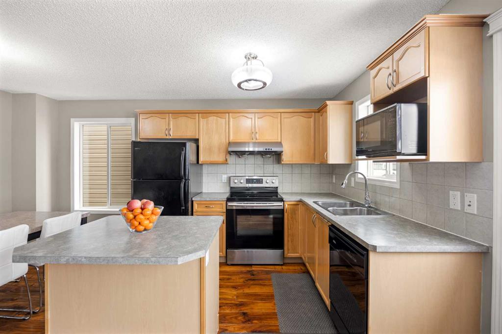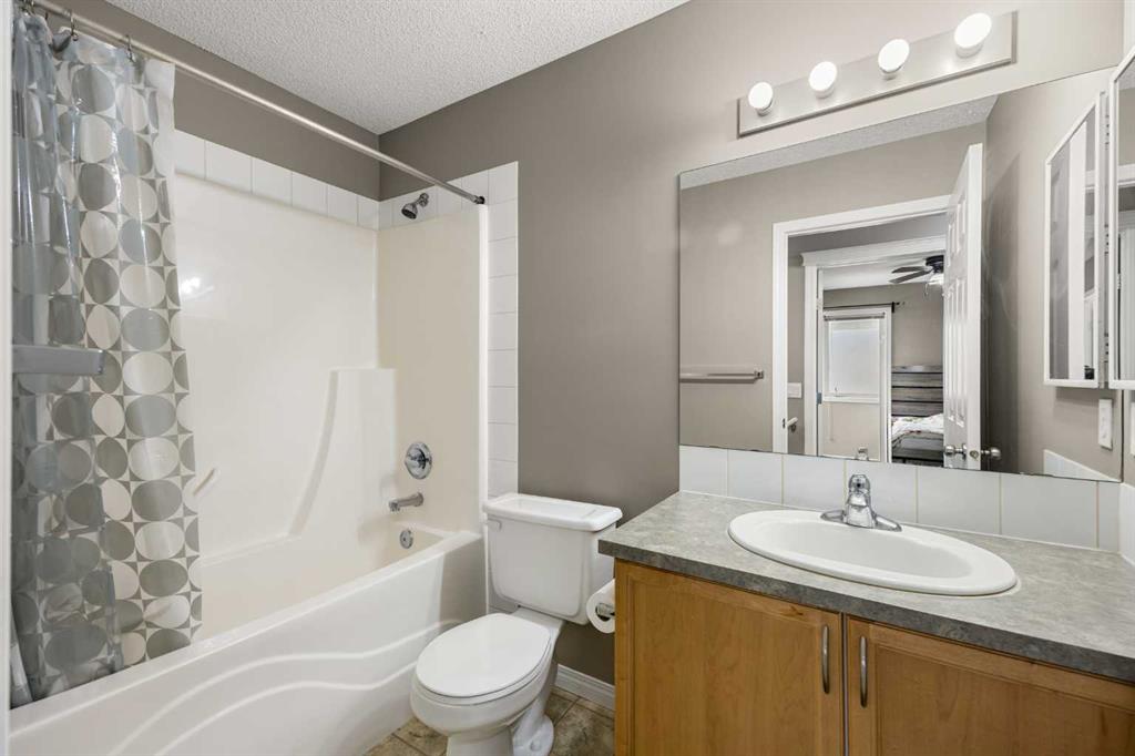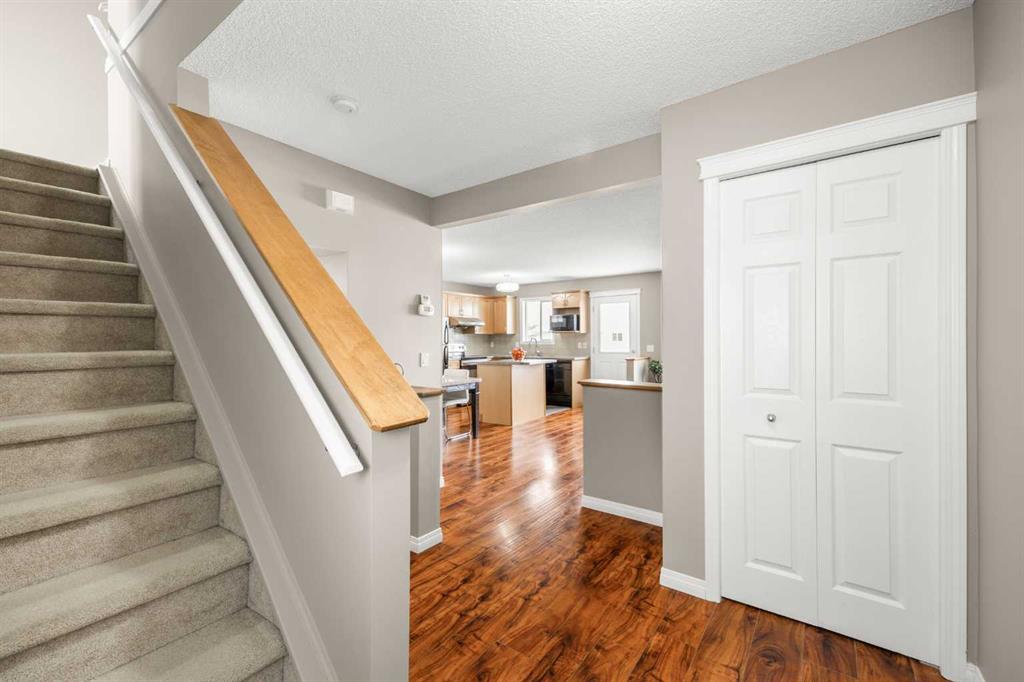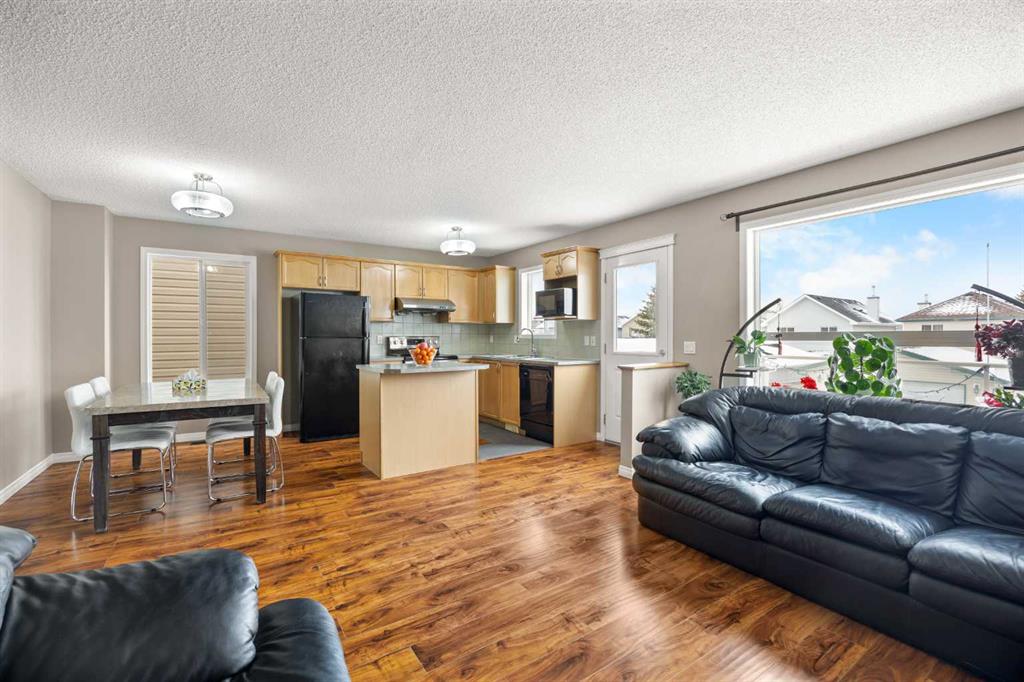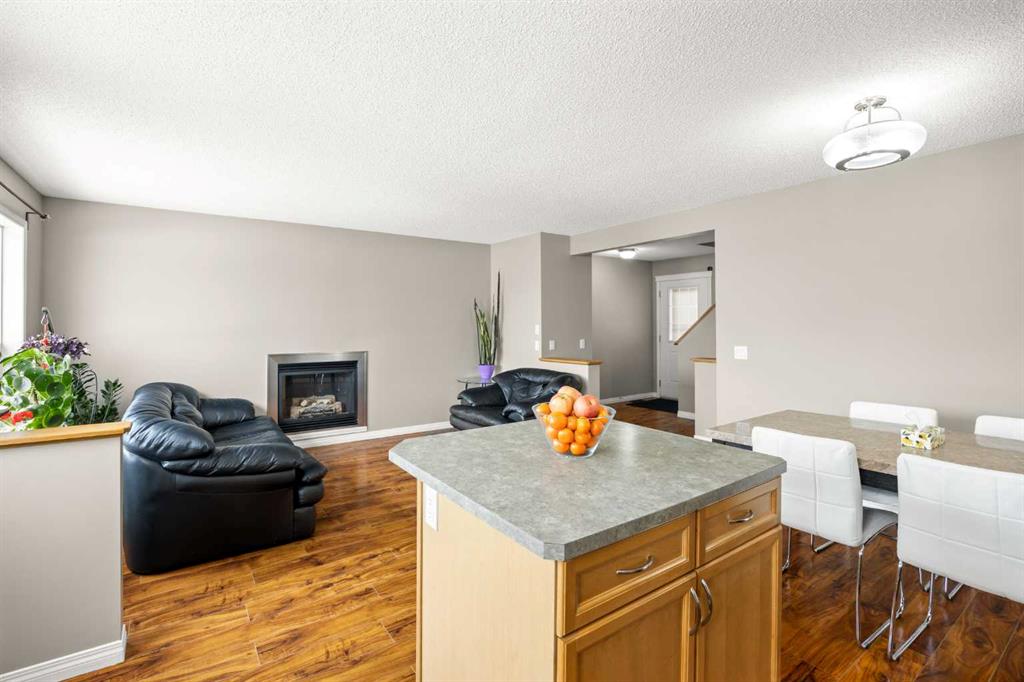 Watch your kid walk to school! Welcome to this well-maintained 3-bedroom, 3.5-bath family home with fully finished walkout basement in the sought-after community of Coventry Hills, offering over 1,800 sq ft of functional living space. Step inside to a sunny South-facing open floorplan on the main level. The spacious Living room with gas fireplace and large windows creates a bright, inviting atmosphere. On the other side, the Kitchen featuring a centre island with breakfast bar flows seamlessly into the Dining area—perfect for family meals and entertaining. From the open floorplan, step out to a full-width deck (19’2″ x 9’2″) with glass panel railing, ideal for outdoor relaxation. A powder room and Laundry room complete the main level.