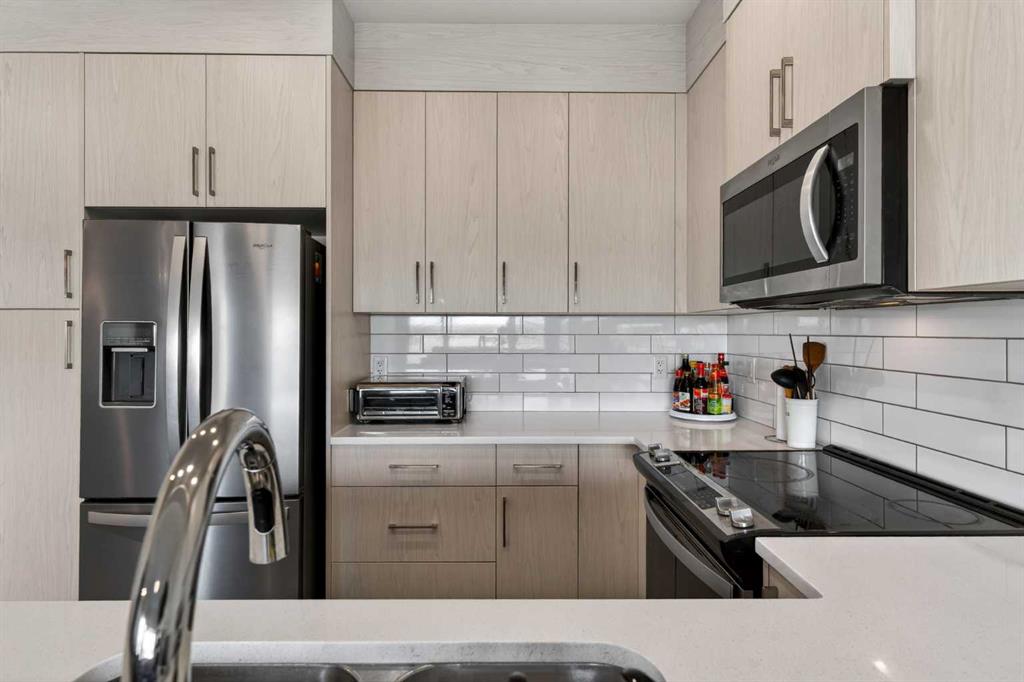 BE THE FIRST OPEN HOUSE VISITORS to this perfectly placed, one of a kind and exceptional walk-out 2-storey Townhome, on SUNDAY, MARCH 22, 2026 from 12:00pm Noon to 3:00pm – RARE CHANCE for one of the few West-to-East views of the Ravine and Pond pathways, to be enjoyed every day from the vantage of your private Balcony AND Primary Bedroom, all situated at the furthest corner of Arrive at Crestmont West. SEE the iGuide and 3D Floor Plan LINK to experience in person. A stunning 2034 square feet of developed space offers 4 Bedrooms, all with Desk-space, 3.5 Bathrooms, Studio-style permit-finished Basement, a large Foyer, full-sized Dining and Living Rooms, a contemporary wrapped Kitchen with wide eating bar, upper level Laundry, tons of Storage AND as a bonus, a 25.5′ x 11′ Garage with full driveway, to hold the biggest truck, or standard vehicle-plus-other-hobby gear. FUN FACT: these perfectly designed 2-Storeys have full Basements, plus front AND rear windows, basement patio and yard, overshadowing the double garage units that LACK basement function, have attached rear neighbours, smaller size total, no rear windows and no full use yard (see our RPR with Compliance). 116 Crestridge Common SE is filled with gorgeous upgraded high-end finishings, like luxury vinyl plank and tile floors through the Main, Basement, Foyer, Bathrooms and Laundry, 8′ high interior main doors, slab-style soft-close cabinets with full-height pantry and pot-pan drawers, stone counters throughout, undermount sinks, stainless appliance package, roller blinds, tankless hot water, active HRV/HVAC, pot lighting, sleek plumbing and lighting fixtures, a gas line at BBQ, a water line in the Garage – don’t wait for this one-of-a-kind home in a perfect location.