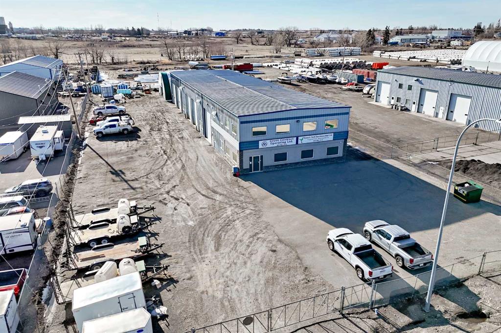 1 Acre Lot. 8064 square feet main level plus 1225 square foot mezzanine. Additional Engineered fabric Structure for Cold Storage. Bring Your Business to Strathmore, AB Fully Developed Commercial/Industrial Space . 7 private offices – ready to move into Reception & meeting area – welcoming and functional Conference room – ideal for team collaboration Flex area – adaptable to your business needs. Storage room – organized space for supplies bathrooms – convenience for staff and clients 4 Attached Industrial Bays – 46’ x 34’6 with 16’ x 14’ electric doors. Secured Fenced Yard 3 Storage Sheds. Located in the growing community of Strathmore, AB ?? Lease rate: $16 per sq. ft. + Triple Net ?? Ready for immediate relocation and expansion