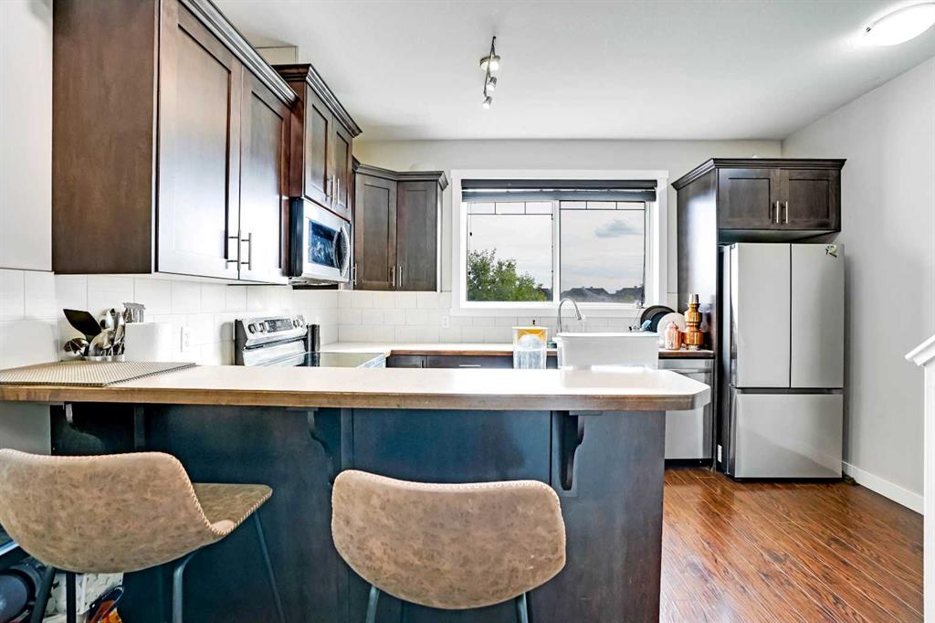 Welcome to 116 Skyview Ranch Road NE, a perfect blend of modern comfort and convenience, making it an ideal choice for families and professionals alike. The main floor welcomes you with a functional 2-piece bathroom, a spacious foyer, and an attached single-car garage, along with a handy utility space for added storage. Moving to the upper first floor, you’ll find an inviting open-concept layout featuring a dining area and a well-appointed kitchen equipped with essential appliances, including a dishwasher, electric stove, microwave hood fan, refrigerator, and washer/dryer. The kitchen also boasts laminate counters and a breakfast bar, perfect for casual meals, while the adjacent living room creates a cozy atmosphere with a charming fireplace. Large vinyl windows and stylish window coverings allow natural light to fill the space. The upper second floor is dedicated to relaxation and privacy, offering a spacious 4-piece bathroom, a luxurious 4-piece ensuite, and two generously sized bedrooms, including a primary bedroom for added comfort. A convenient laundry area completes this level, ensuring practicality for everyday living. Beyond the property, the Skyview Ranch community provides an exceptional lifestyle with nearby schools, shopping centers, parks, playgrounds, and a basketball court for outdoor activities. Excellent public transit options are also within easy reach, making commuting a breeze. This home is a perfect combination of style, functionality, and a prime location—don’t miss the opportunity to make it yours!