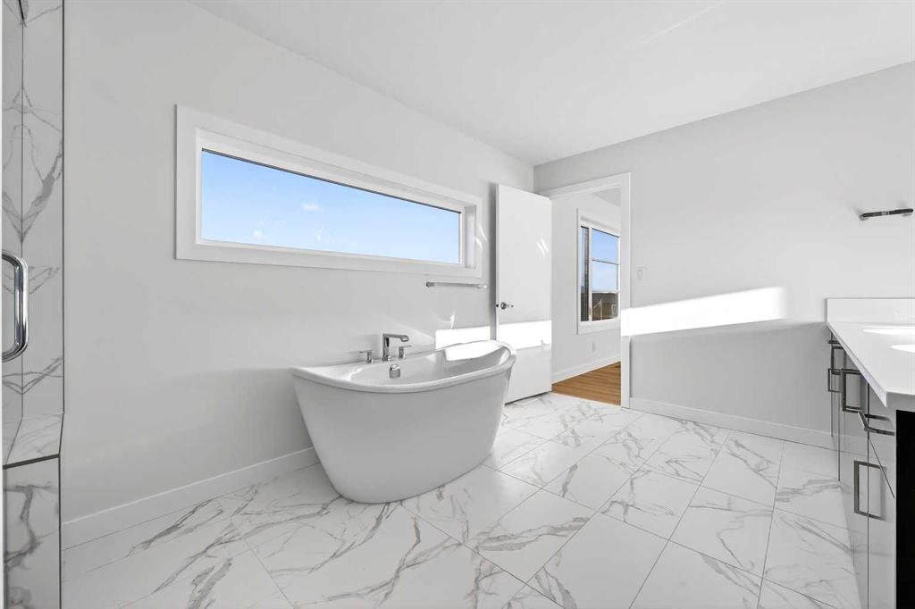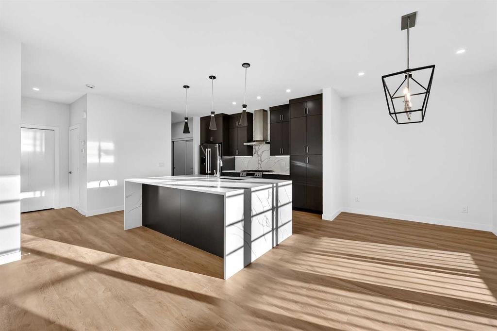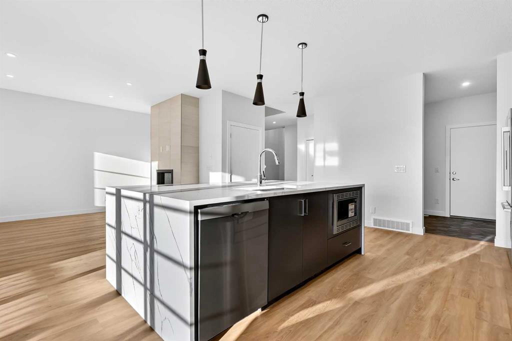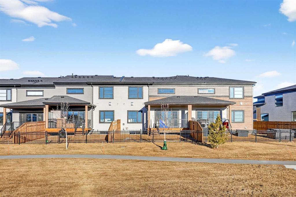 Experience the height of sophisticated living in this highly coveted luxury townhome, where a generous floor plan meets modern comfort and refined finishes. Proudly presented by StreetSide – this thoughtfully designed unit features 3 bedrooms, 2.5 bathrooms, and a front attached double car garage. The heart of the home is a spacious kitchen with a large central island, polished white quartz countertops, upgraded stainless steel appliances including a gas range, and elegant sliding French patio doors that opens to your covered deck area – ideal for both everyday living and entertaining. A cozy fireplace anchors the living room, while luxury vinyl plank flooring flows throughout the main living areas, complemented by gorgeous tile in the entry and bathrooms. The primary ensuite is a private sanctuary, complete with heated tile flooring, double sinks, a freestanding soaker tub, and an oversized tile-and-glass shower delivering spa-inspired comfort at home. The unfinished basement with roughed-in plumbing provides future potential for additional living space tailored to your needs. Professional landscaping and fencing complete your new home. Ideally located in the award-winning community of Harmony, residents enjoy Mickelson National Golf Course, private lake amenities, scenic walking and biking trails, and a wellness-focused lifestyle—just a shorty drive from Calgary city minutes and 45 minutes from the Rocky Mountains, where nature and convenience come together effortlessly