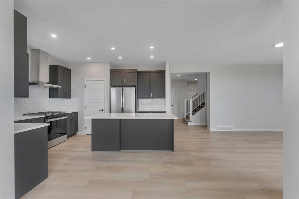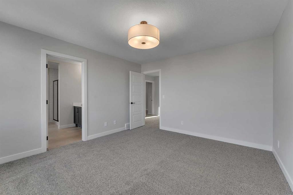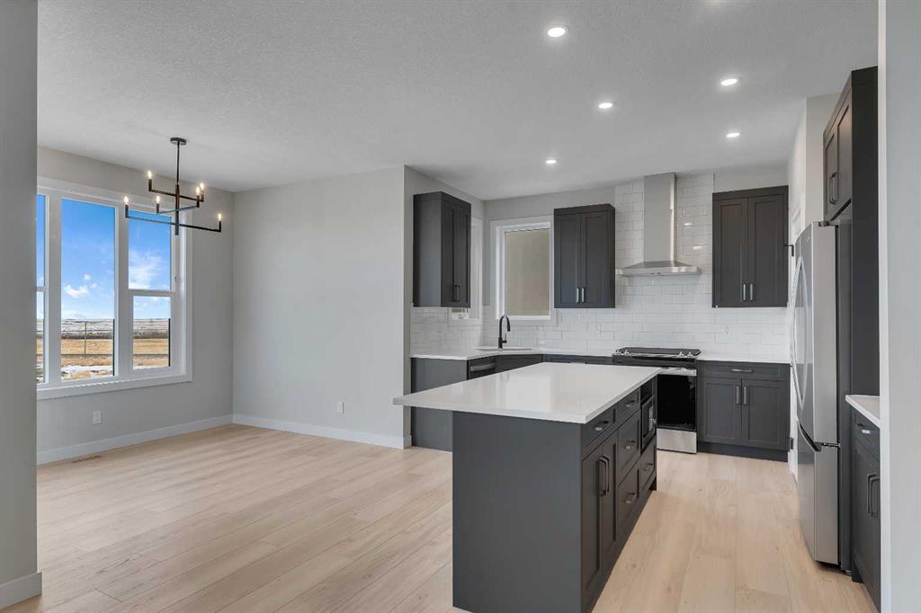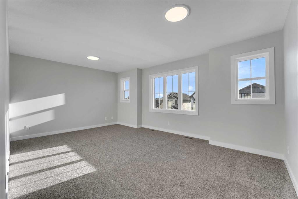 Start the new year off in your brand-new, stunning Alliston at Home new build in Iron Landing. This home offers exceptional design, thoughtful details, and timeless style. With 3 bedrooms and 2.5 bathrooms, and a double garage with an additional tandem parking stall, there’s room for your family, vehicles, toys, or hobbies! Step inside to a grand, open-to-above front entrance, showcasing soaring ceilings and wide-plank vinyl flooring that is as beautiful as it is durable, spanning the main floor. Large triple-pane windows surround the bright and airy living area, flooding the space with natural light. The kitchen is a chef’s dream, with a corner sink framed by windows, elegant cabinetry, stone countertops, a spacious island, a large pantry, and stainless steel appliances, including a gas range. The kitchen flows seamlessly into the dining and living areas, and from the dining space, you can step out onto your finished deck, complete with a gas line for your BBQ. A convenient powder room is tucked neatly at the front of the home. Venture upstairs, the primary suite offers the perfect retreat with space for a king-sized bed, a spa-inspired ensuite featuring a soaker tub, separate shower, dual sinks, and a large walk-in closet. Two additional bedrooms, a full bathroom, upper-level laundry, and a front bonus room complete the second floor. The walkout basement is unfinished and ready for your personal design ideas. Located in the vibrant community of Iron Landing, this home combines modern living with small-town charm. Enjoy nearby parks, schools, and amenities. Everything you need is close to home. Photos are representative and are of a similar model. Area size was calculated by applying the RMS to the blueprints provided by the builder. Taxes to be assessed*