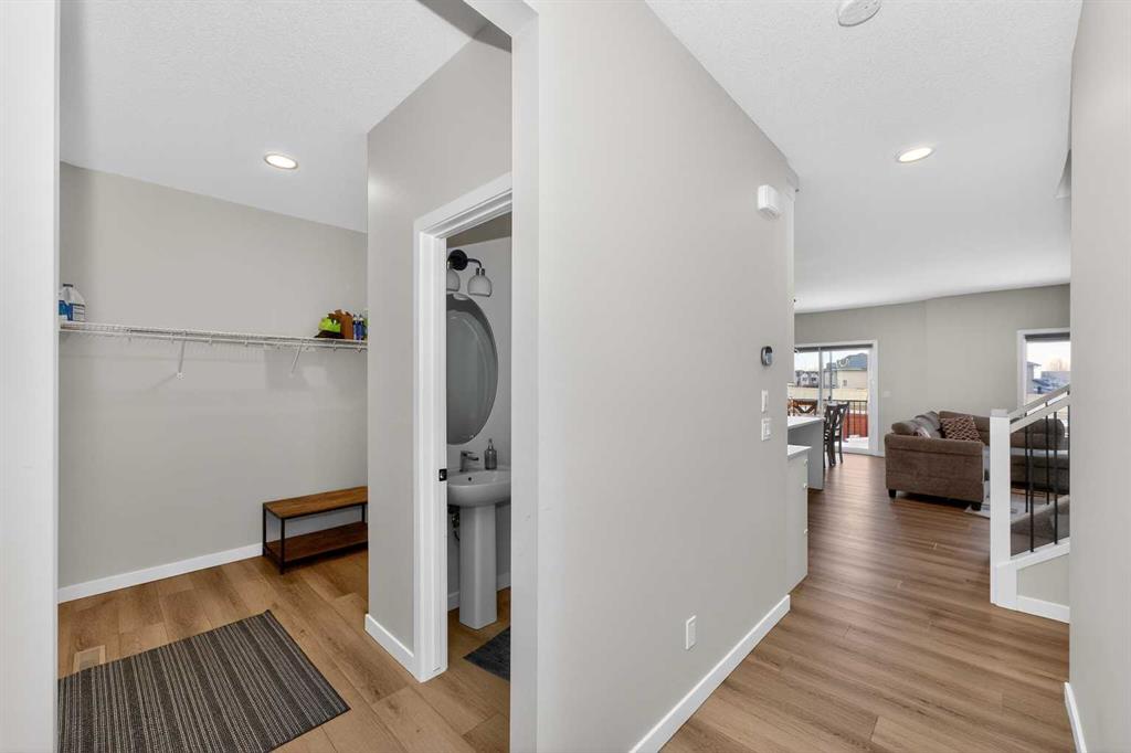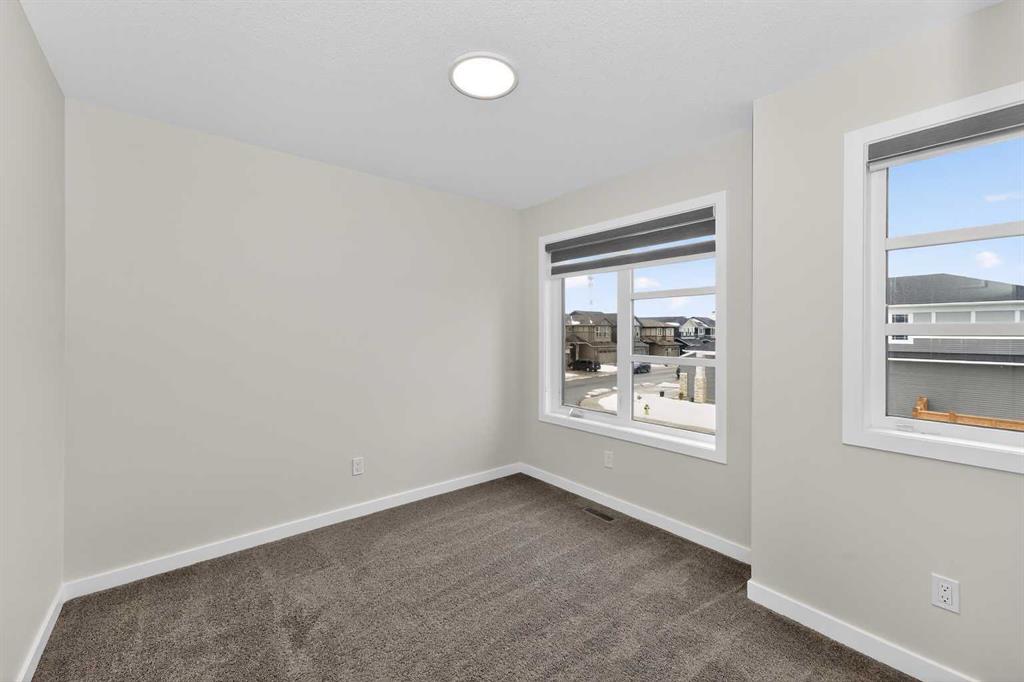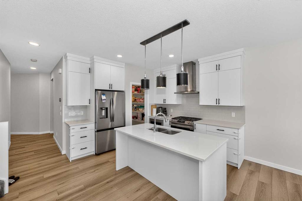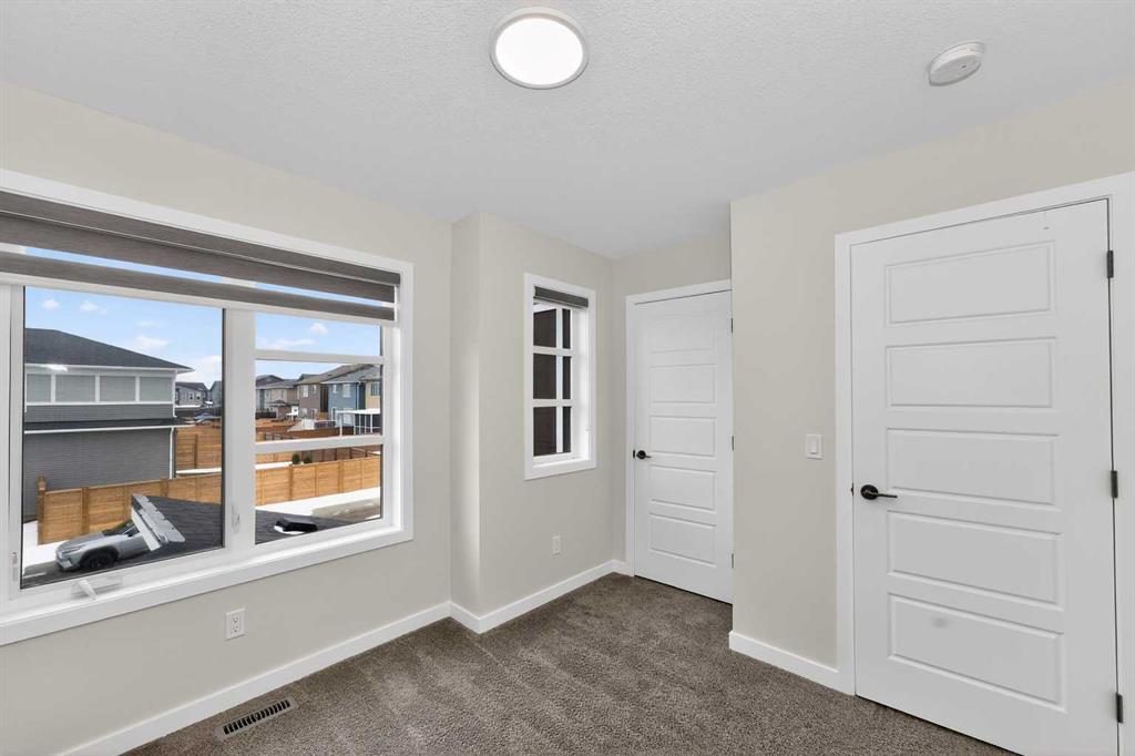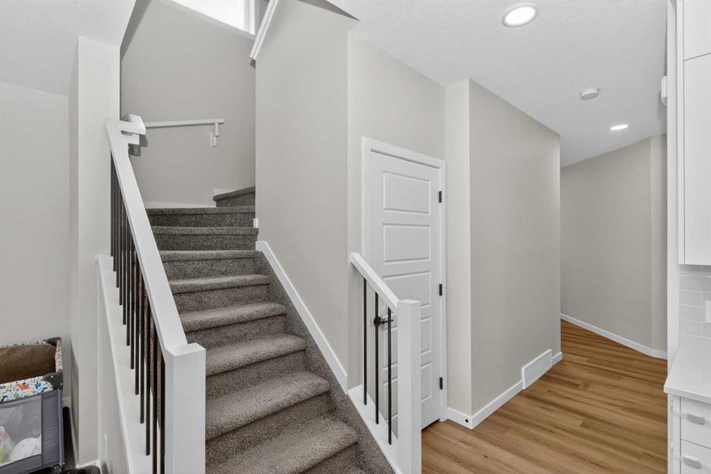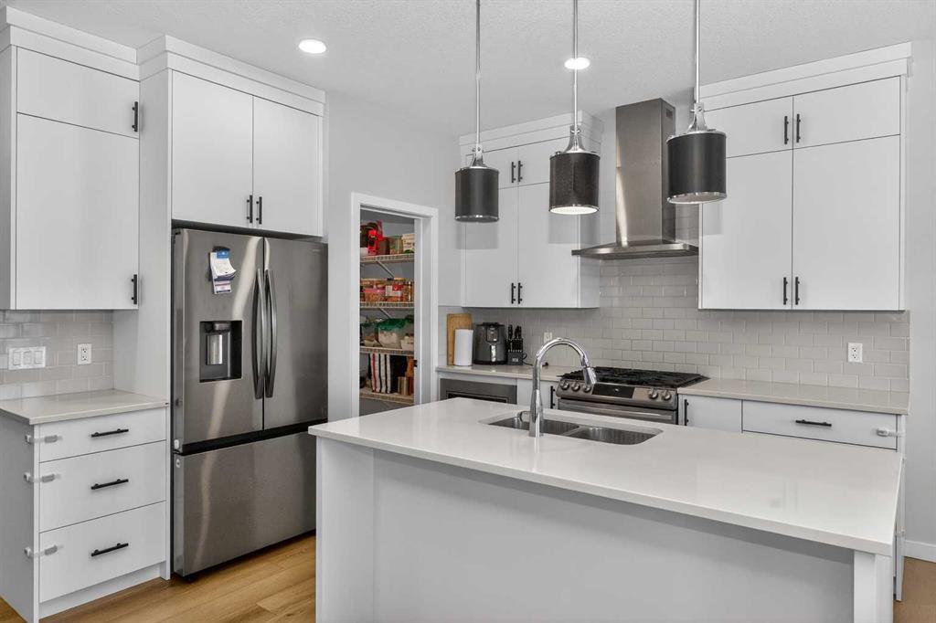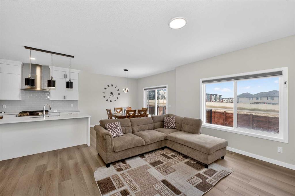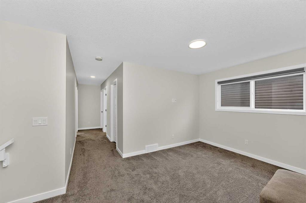 Presenting an exceptional opportunity to own a meticulously crafted 2024-built residence, showcasing contemporary architecture, refined finishes, and a prime location within one of Airdrie’s most desirable family-oriented neighborhood’s. Designed with both functionality and style in mind, this home offers a bright and open main floor featuring a spacious living area, a thoughtfully designed kitchen highlighted by a large central island, a versatile den ideal for a home office or study, and a convenient powder room. The double attached garage provides everyday ease, while the expansive backyard offers abundant space for outdoor living, recreation, or future landscaping enhancements.